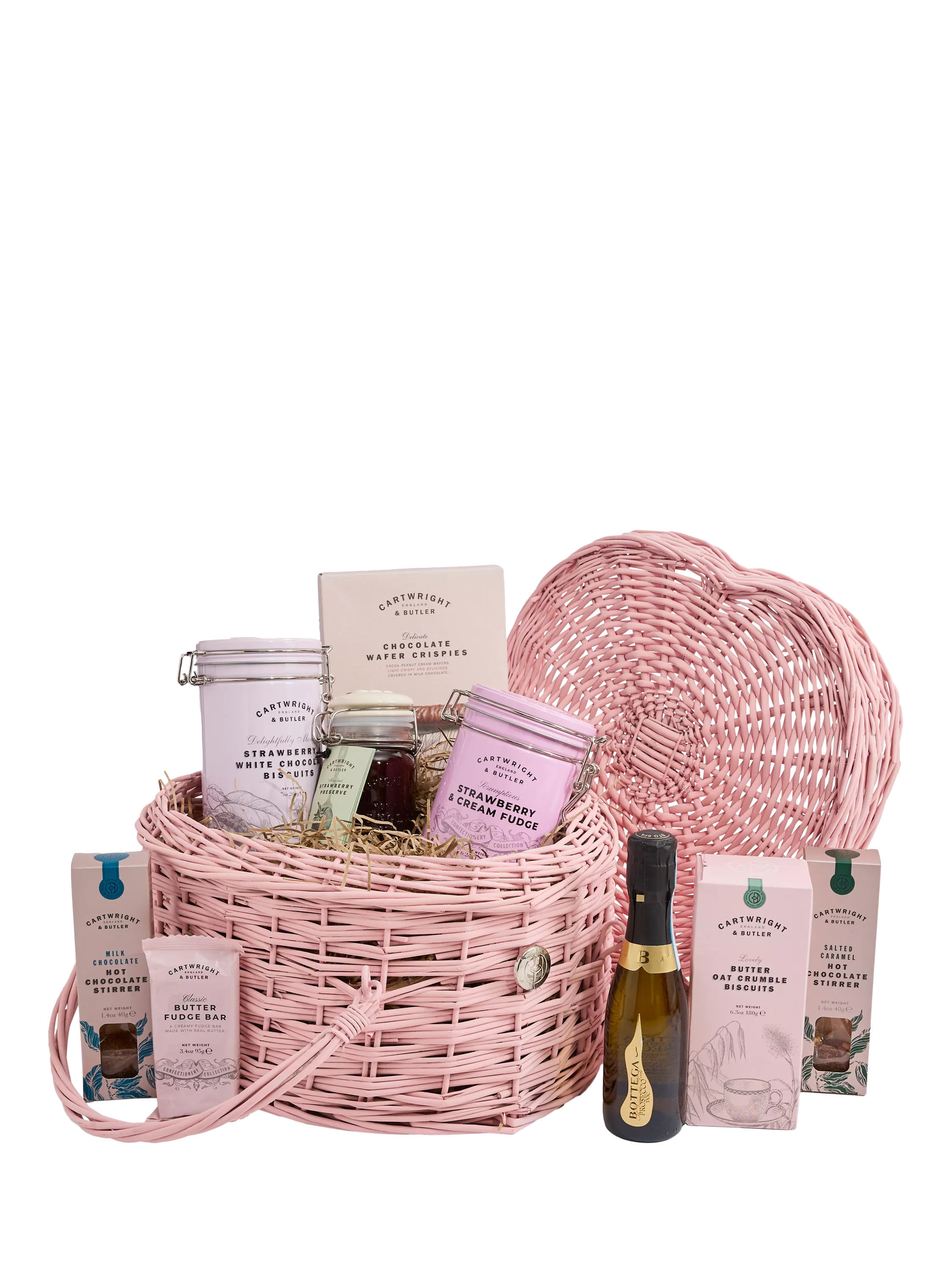 Cartwright & Butler's limited edition From The Heart gift hamper contains a range of specially selected indulgent products, all presented in a beautiful pink, heart shaped wicker basket.