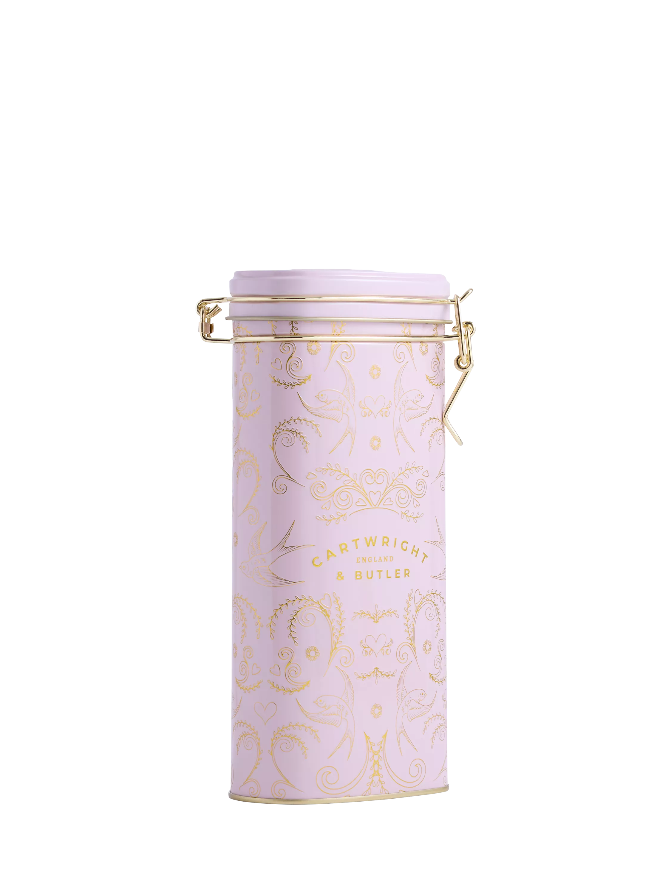 The light dusty pink heart shape tin is adorned with embossed gold hearts, swallows and flowers, making this stunning tin perfect for when you want to send your love. Unique, timeless and in true delicious Cartwright & Butler style.