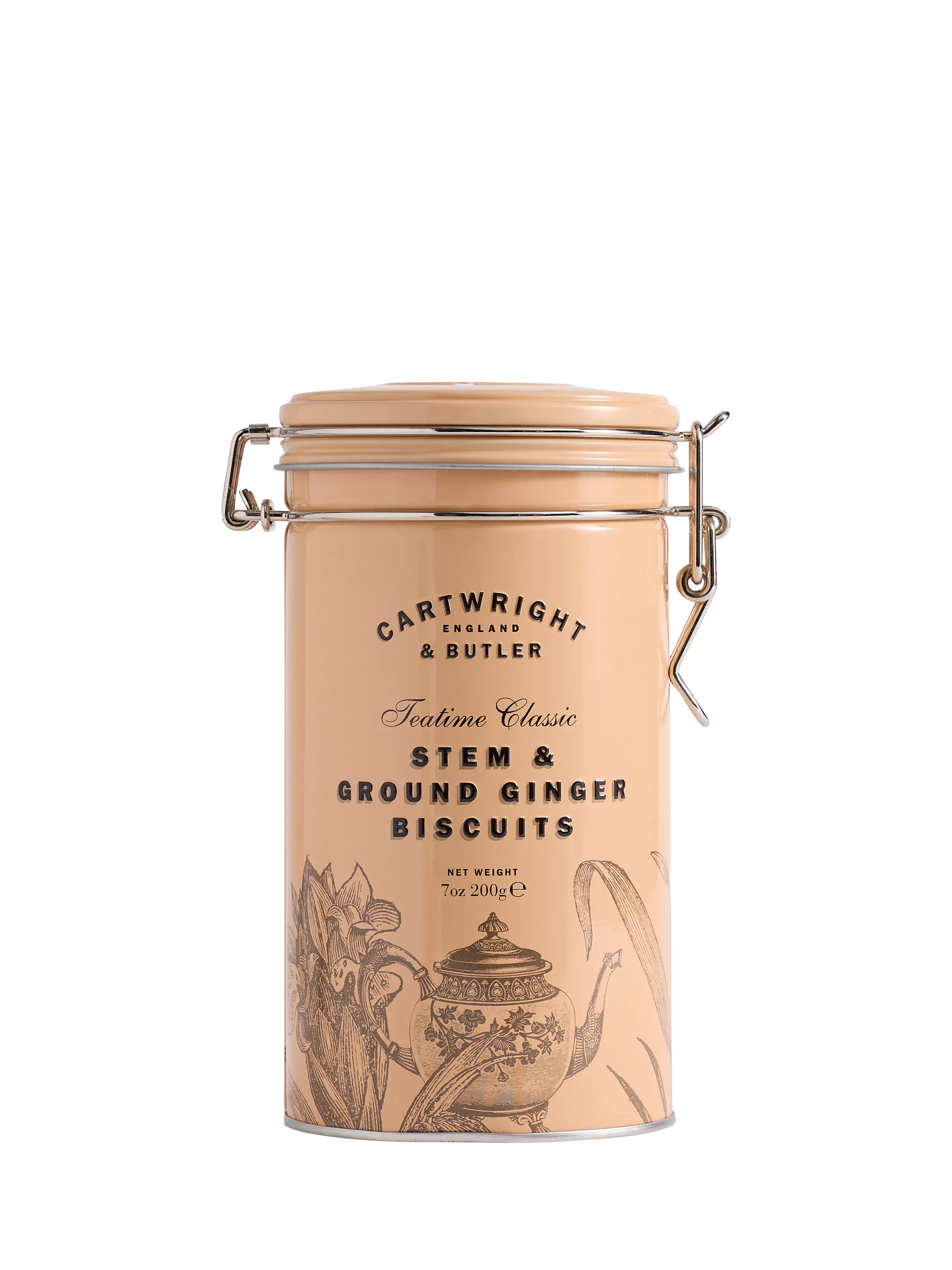 Cartwright and Butler's refined version of a classic ginger biscuit. The recipe contains both ground and stem ginger to spice the dough, which is then baked to a crisp, light snap. Presented in a beautiful biscuit tin, complete with a signature clip-lid.