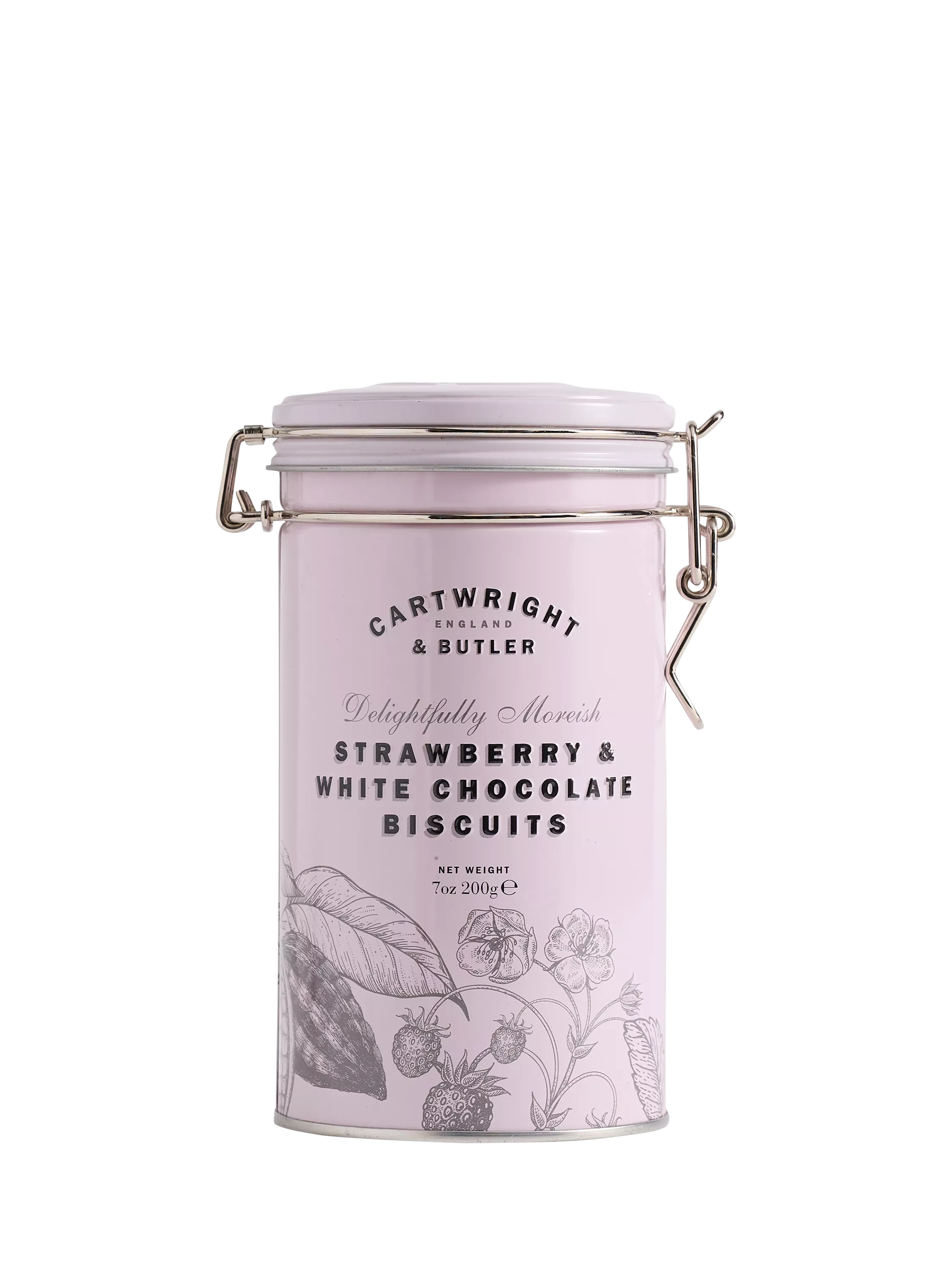 The inspiration for this recipe came from that classic combination strawberries and cream. A crisp, crumbly biscuit bake, laden with handfuls of dried strawberries and chunks of fine white chocolate.Presented in a signature clip-lid tin.