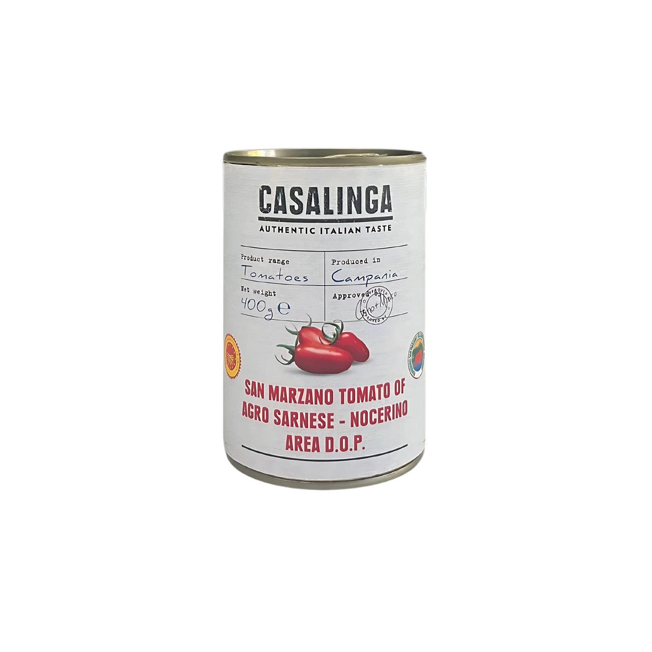 CASALINGA presents authentic San Marzano Tomatoes D.O.P., which are a highly sought-after variety of plum tomato. These tomatoes are renowned globally for their superior flavour profile, especially when cooked. Their quality is strictly guaranteed by their unique, controlled place of cultivation near Mount Vesuvius.