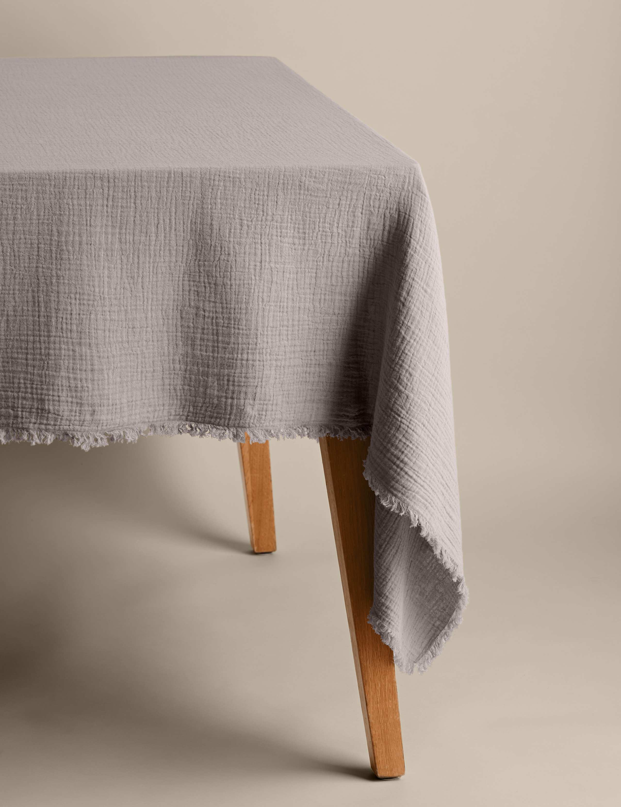 Read MoreAdd the finishing touch to your dining space with this pure cotton tablecloth. The textured style is crafted from soft, lightweight muslin fabric with frayed edges for an extra-tactile look and feel.