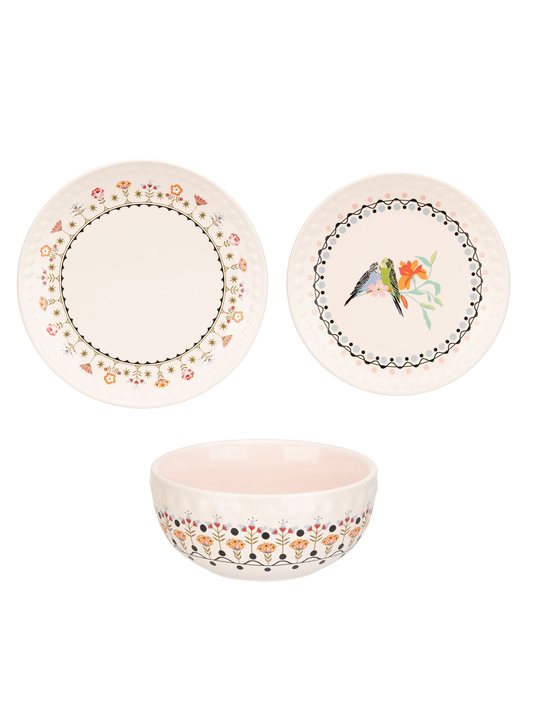Entertain your favourite guests with this eclectic floral and birds print 12 piece dinner set from Cath Kidston, which includes 4 dinner plates, 4 side plates and 4 cereal bowls.