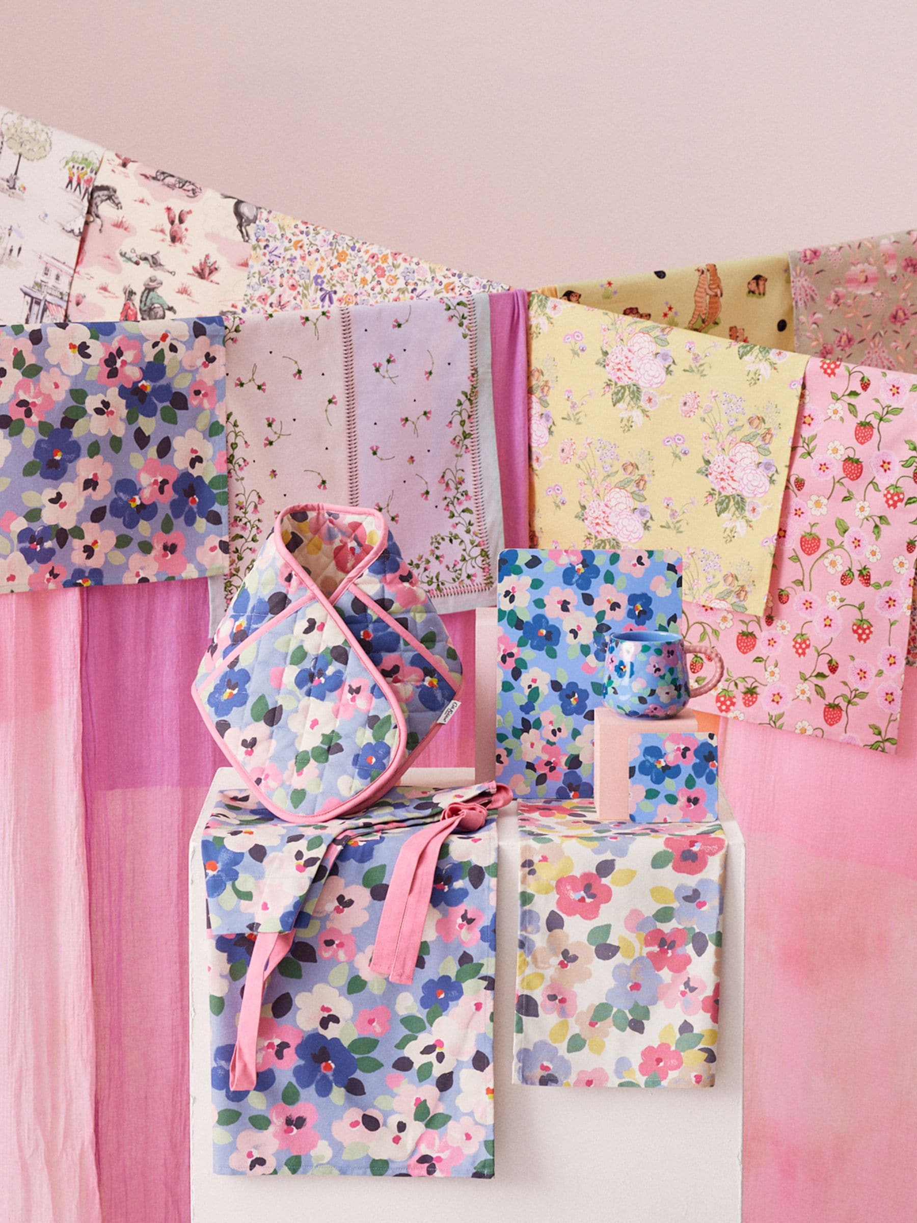 Elevate your daily routine with Cath Kidston's 'Painted Pansies' apron. Subtle hues blend seamlessly, infusing a touch of delicate beauty into your every moment. The pattern like soft brushstrokes, creates a canvas of stunning Pansy flowers.
