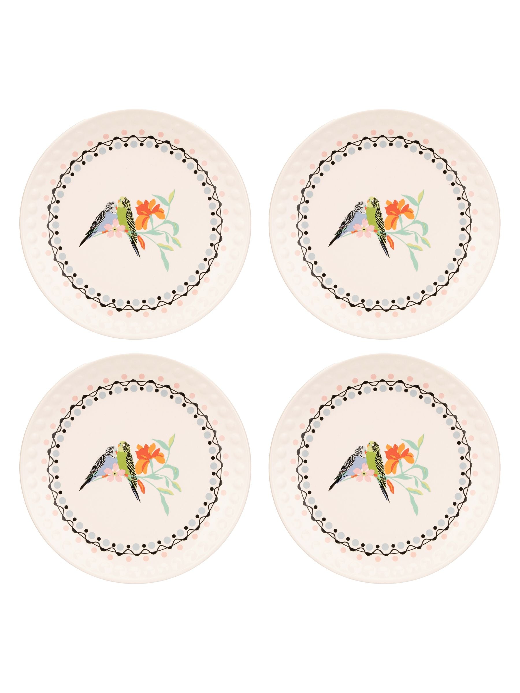 A set of 4 side plates perfectly suited for cakes, snacks or whatever takes your fancy. Printed with our beautiful Paper Birds, originally hand cut from tissue paper for something truly unique. Pair with our floral printed dinner plate for a refined mismatched effect that will bring joy to your everyday. Oven safe up to 200 degrees.