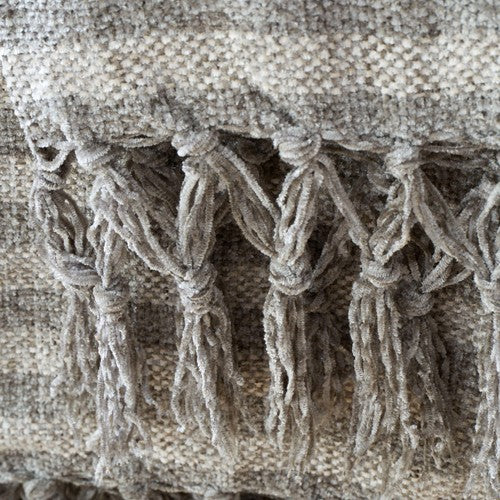 Enhance your relaxation time with this soft grey stripe chenille throw from Catherine Lansfield. Crafted with sumptuously soft fabric, this piece is designed to provide significant warmth on cooler evenings. The timeless stripe pattern effortlessly complements existing home décor themes.