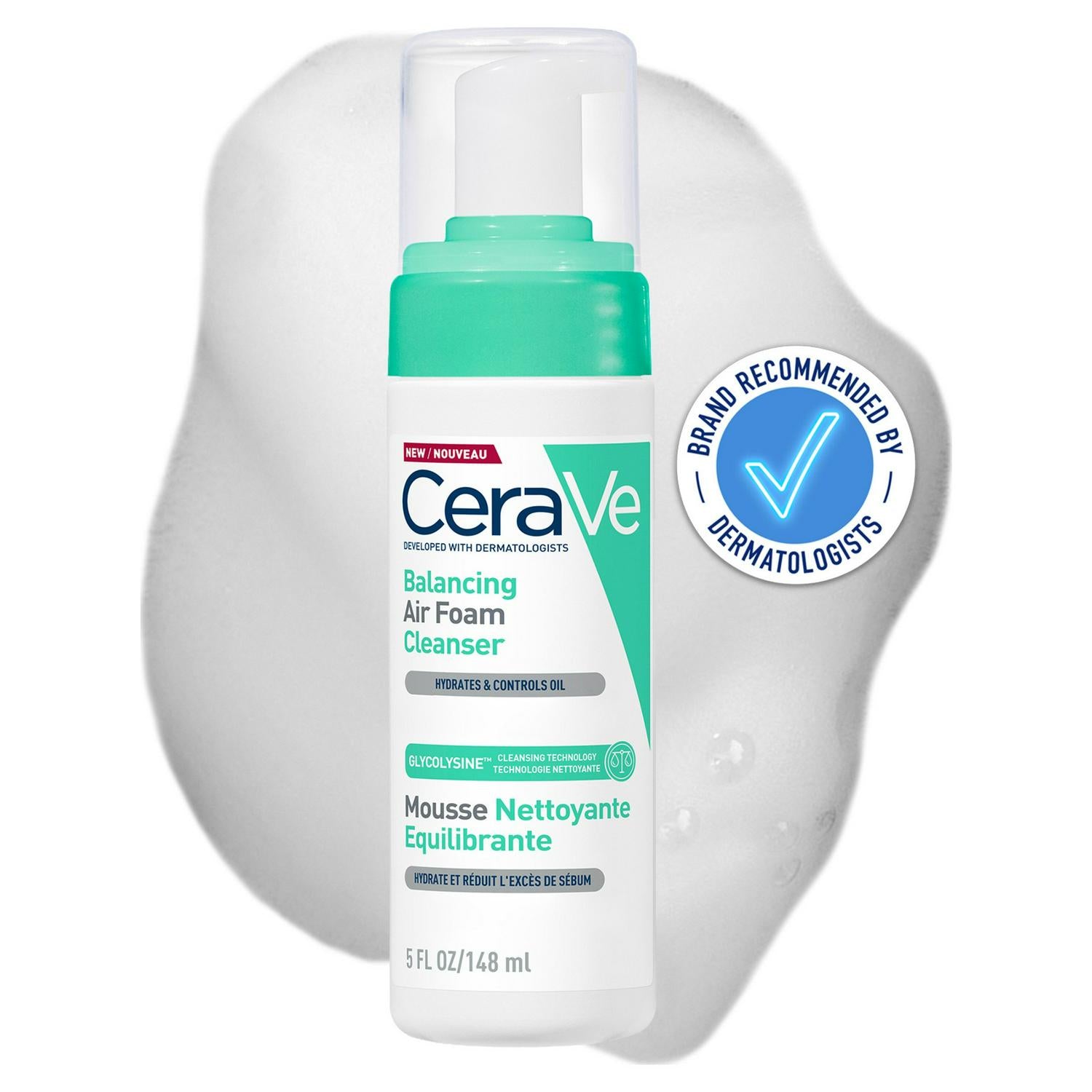 CeraVe Balancing Air Foam Cleanser gently cleanses, hydrates, and controls oil for a protected skin barrier. Powered by our revolutionary technology Glycolysine™ Cleansing Technology, in combination with 3 Essential Ceramides and Allantoin, this foaming facial cleanser helps controls oil for up to 8 hours* while hydrates the skin for up to 24 hours** for a healthier-looking skin barrier. This foaming facial cleanser is gentle on all skin types, including sensitive skin. Free of Added Fragrance, Hypoallegenic, and Non-Comedogenic.