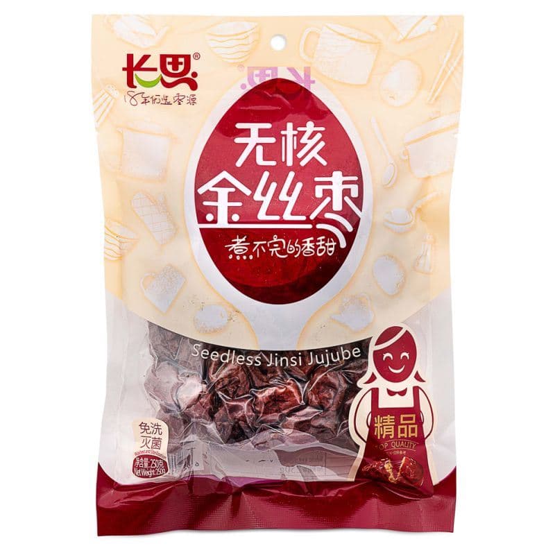 Chang Si Seedless Jinsi Jujube (\u9577\u601d \u7121\u6838\u91d1\u7d72\u68d7) is a delightful and nutritious snack that offers the sweet and rich flavor of jujube fruit without the hassle of dealing with seeds. These jujubes are carefully selected for their superior quality and undergo a meticulous process to ensure they are seedless, allowing you to enjoy them with ease.\n\n