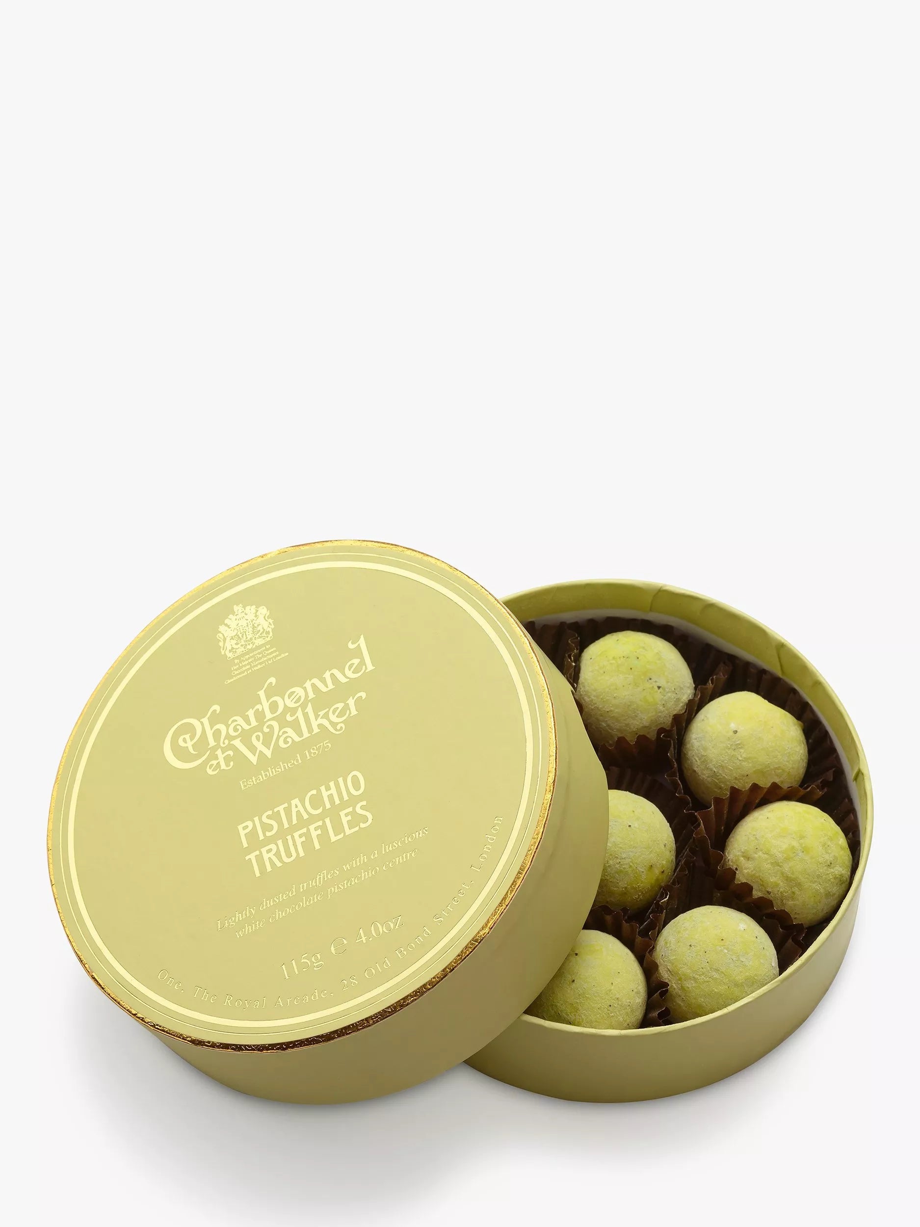 Lightly dusted truffles with a luscious white chocolate pistachio centre.