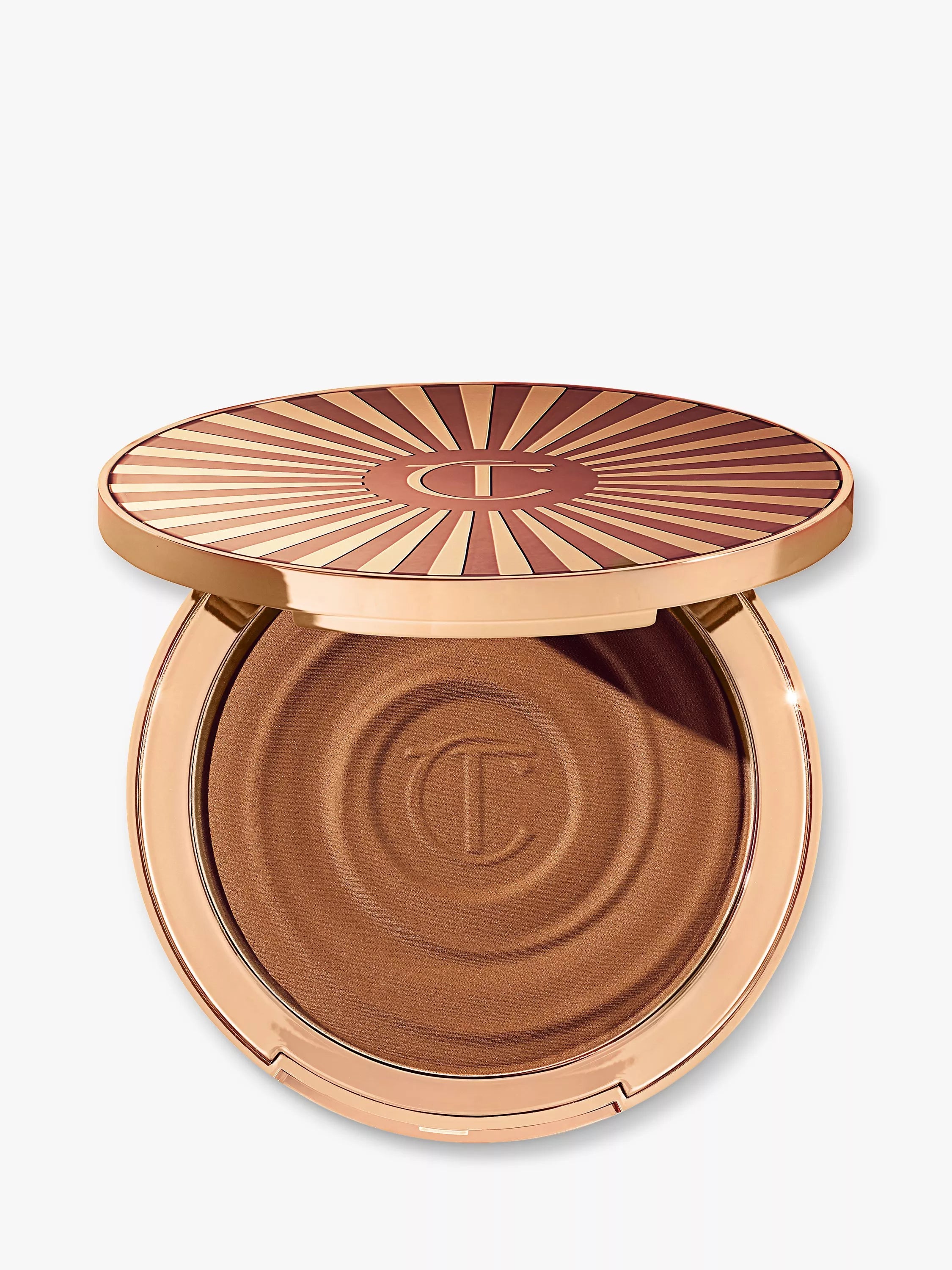 “Darlings, get that summer glow look and feeling with my new Beautiful Skin Sun-Kissed Glow Bronzer! Enriched with hyaluronic acid and sunshine provitamin D3, this cream bronzer is the secret to instant sun-kissed skin and a beautiful, healthy-looking, beachy bronzed glow every day! “My first ever cream bronzer blurs, hydrates and adds a wash of sun-kissed colour to your complexion while improving the look of your skin every time you wear it! Like a portal to your best self, this new bronzing beauty secret will transport you to the world’s most mesmerising beaches to unlock that summer glow look and feeling! Glide onto the face and body for a gorgeous sun-kissed glow from head to toe!” Charlotte Tilbury.