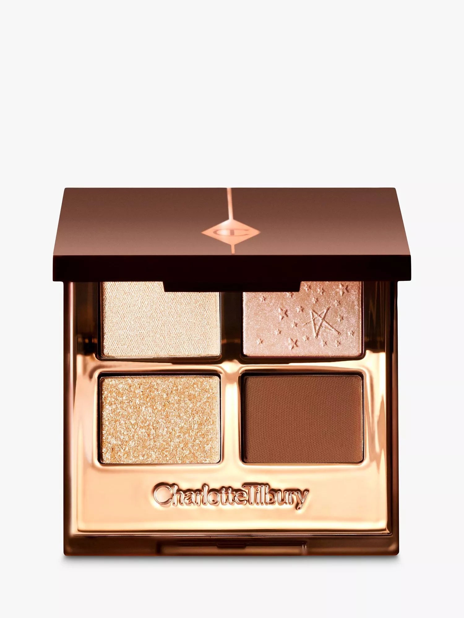 "I have expertly curated this quartet of duo chrome golden pink, warm terracotta-brown and champagne gold shades so that everyone, everywhere can effortlessly create a mesmerising moonlight-inspired gaze. These emollient-rich, highly pigmented-hues are easy to apply and blend for a magical, luminous look! With Multi-Reflecting Pearlescent Pigments and Glossy Lustre, glide on these shadows to make your eyes sparkle from day to night as they catch the light!" Charlotte Tilbury.