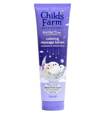 Read MoreUnwind before bed with Childs Farm's award-winning SlumberTime sleep routine. SlumberTime Calming Massage Lotion has a soothing lavender and moon milk scent developed with DreamScentz™* sleep enhancing fragrance technology to help aid sleep. The innovative cream-to-oil formula melts into skin to leave it feeling nourished. Whether it’s used as a moisturiser or for a massage before bed, this hydrating lotion will help comfort and calm your little one for a dreamy night’s sleep. Bring on the Zzz’s!