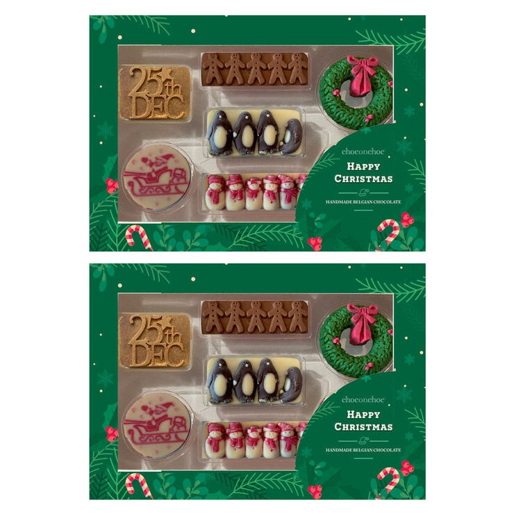 Treat someone to a festive selection of chocolates. A beautifully detailed collection of seven solid Belgian chocolates each featuring a different magical design of the Christmas holidays.