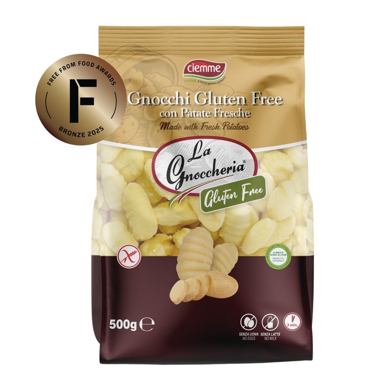 Read More| Ciemme Gluten Free Gnocchi are delicious Italian dumplings made with fresh potatoes in the Puglia region. Produced by Italy’s leading gnocchi company in the traditional way from the finest local potatoes, rice and corn flour. Simply cook in boiling salted water for 2 minutes, pan fry gently in a little olive oil until golden brown, or bake in the oven covered with your favourite pasta sauce and vegan mozzarella cheese. Italians often serve gnocchi with basil pesto. Free From Gluten, Milk, Egg and Suitable for Vegans. |
