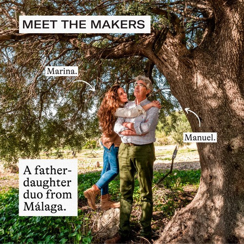 This vibrant oil from the November 2024 harvest was sourced directly from Marina and her father, Manuel, in the north of Málaga in Andalucía, Spain. Marina has been transforming her traditional multi-generational farming business into a modern, top multi-award winner in just a few years.