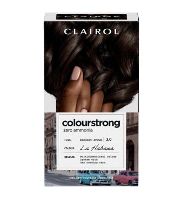 Read MoreCOLOUR + STRENGTH* + ZERO AMMONIA, ALL IN ONE. Clairol Colour Strong gives you multidimensional colour and reinforces the internal structure of your hair.* What's the secret? The continuous system with colour + bonding has AHA (alpha-hydroxy-acid) in every step: Bonding Primer, Permanent Colour and Bonding Treatment. Zero ammonia + 100% grey coverage. Sublimely multidimensional colour.