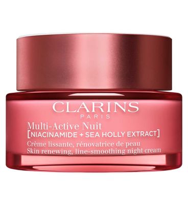 The day and night creams are enriched with Clarins Skin Charger Complex which includes 2% niacinamide and organic sea holly extract to boost collagen synthesis, smooth fine lines, improve skin texture and reinforce the skins resistance to prevent the further appearance of first signs of ageing. Signs of fatigue and stress are halved***: wrinkles are reduced by 1/3****, skins texture appears redefined, skin tone is more even and radiance is restored.