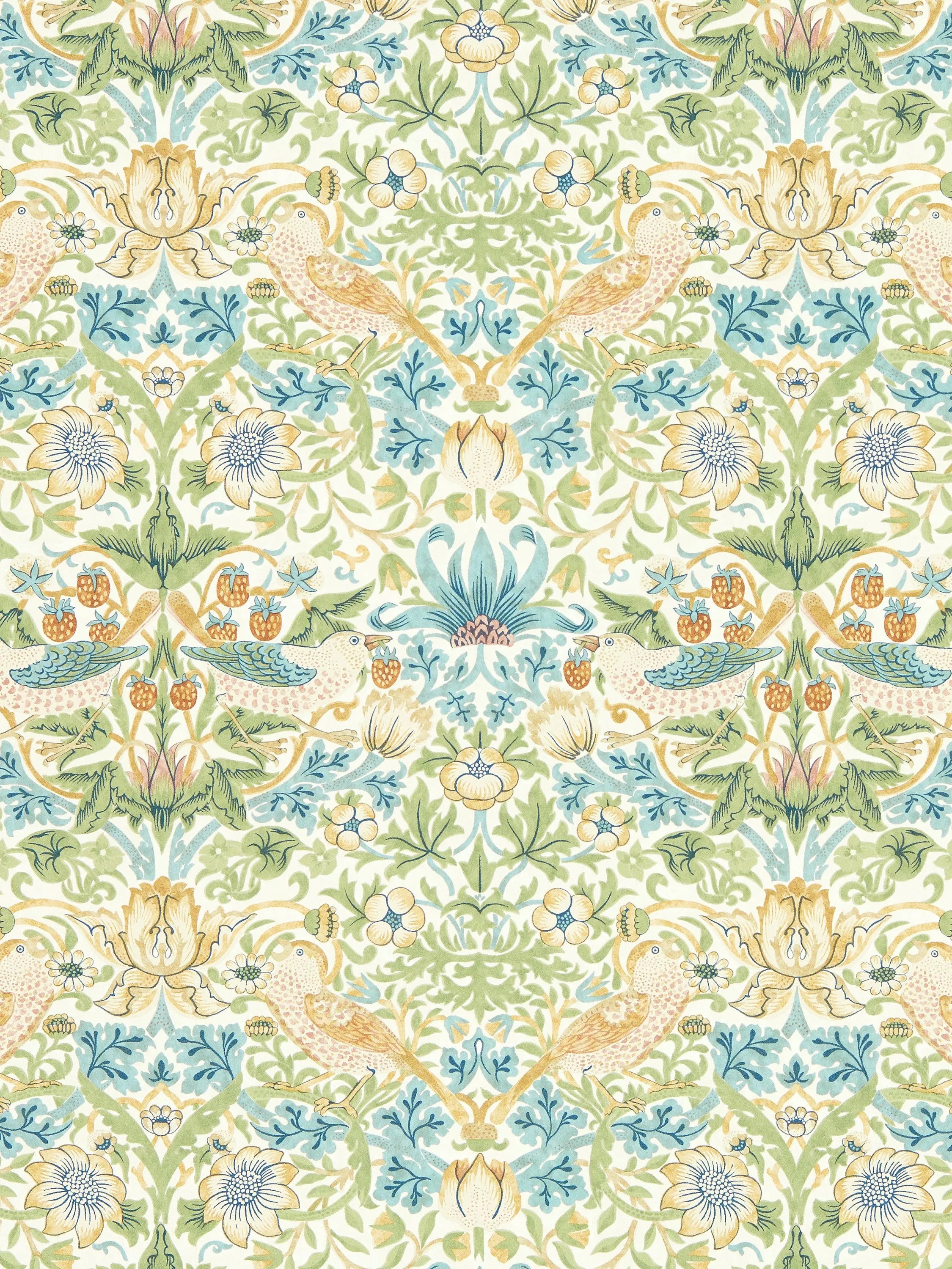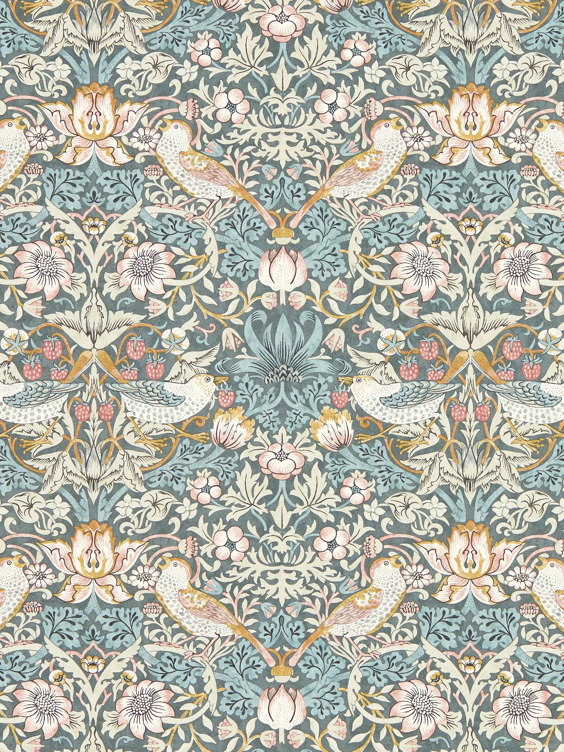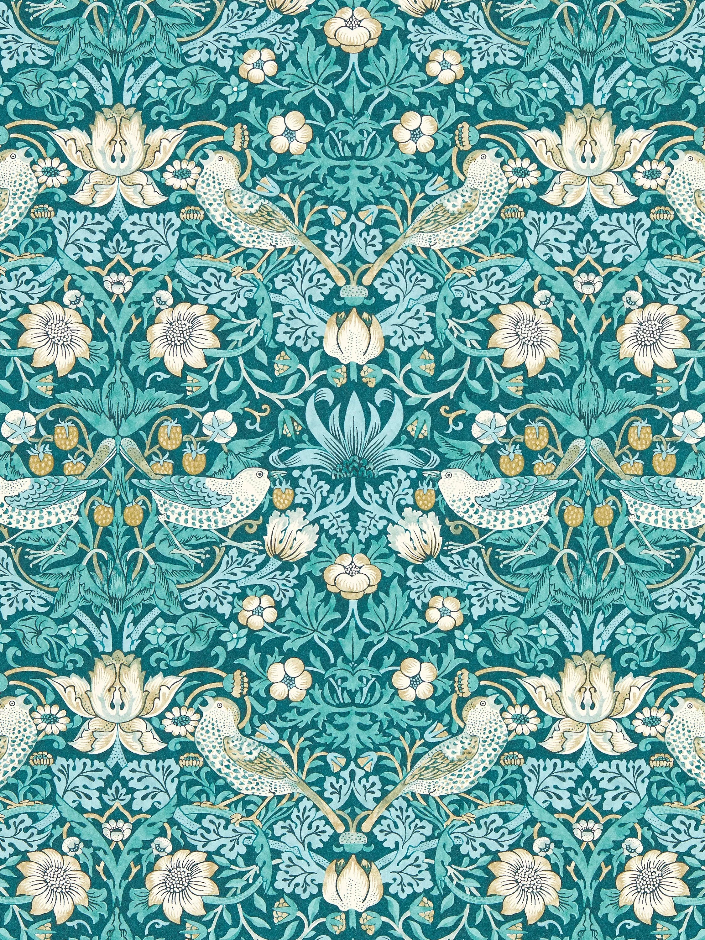 William Morris's most iconic pattern, Strawberry Thief tells the story of a cheeky, fruit-thieving bird. Intricate and highly ornamented, this cherished design is a riot of colour and expressive detail.