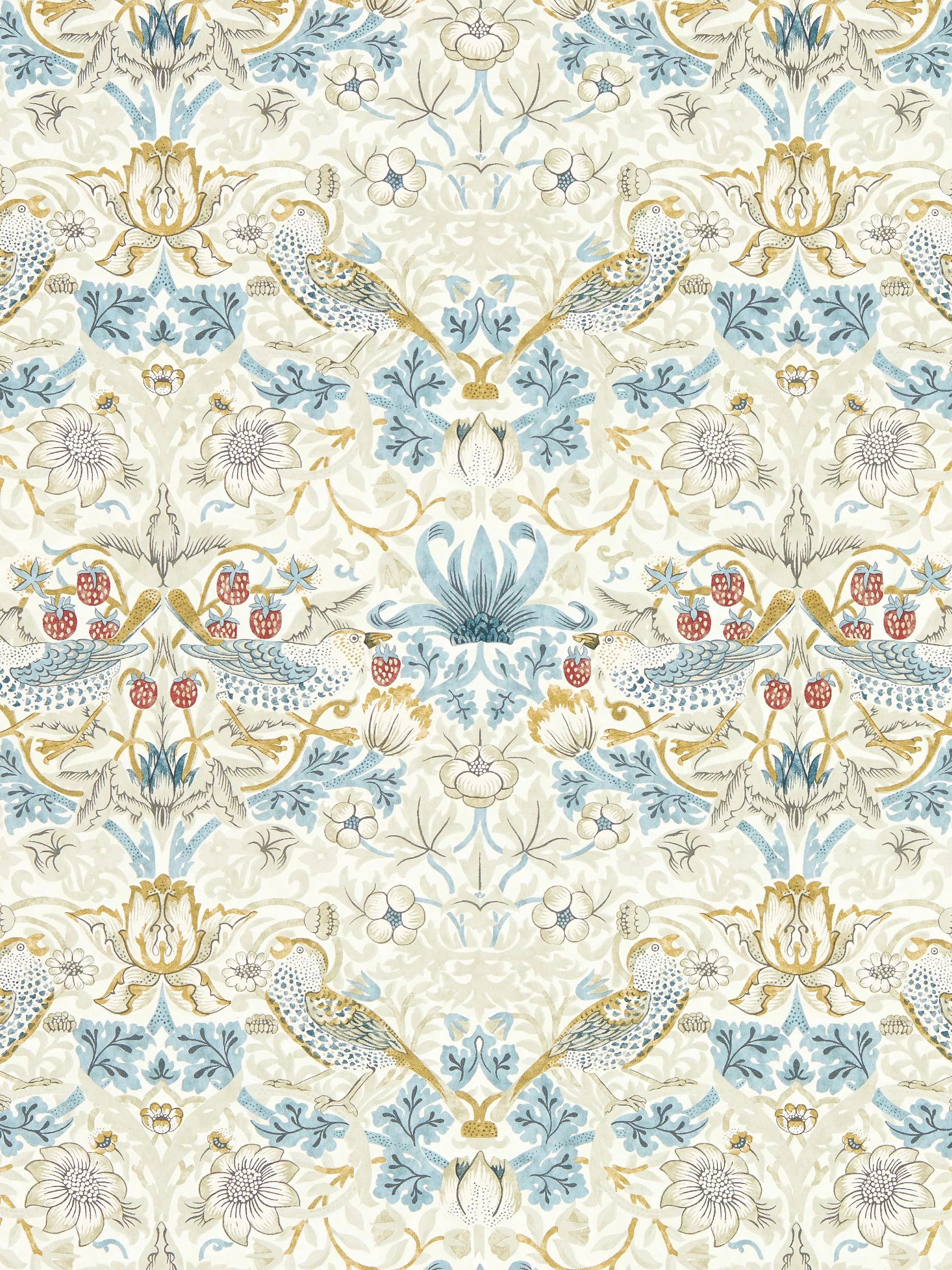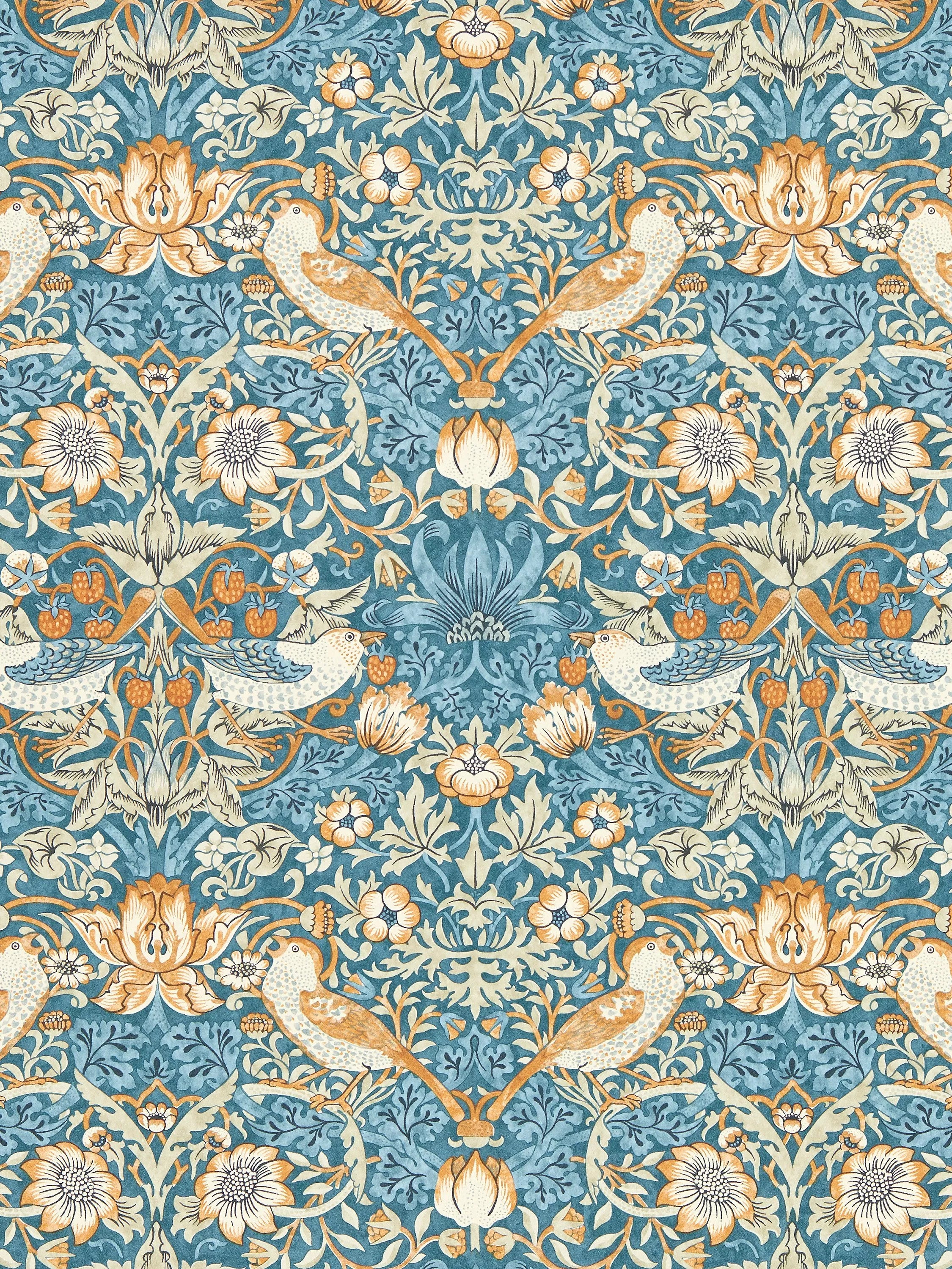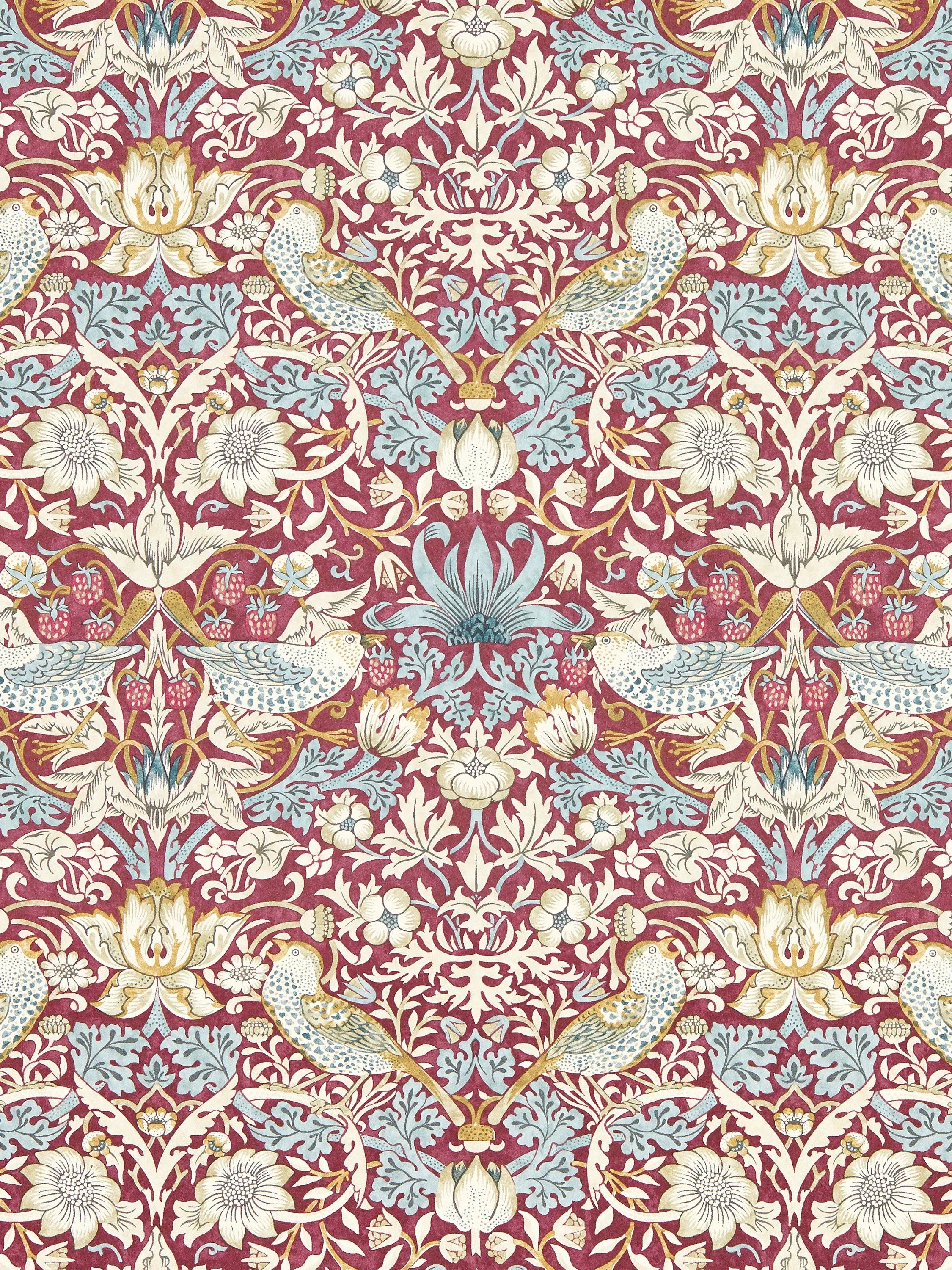 William Morris's most iconic pattern, Strawberry Thief tells the story of a cheeky, fruit-thieving bird. Intricate and highly ornamented, this cherished design is a riot of colour and expressive detail.