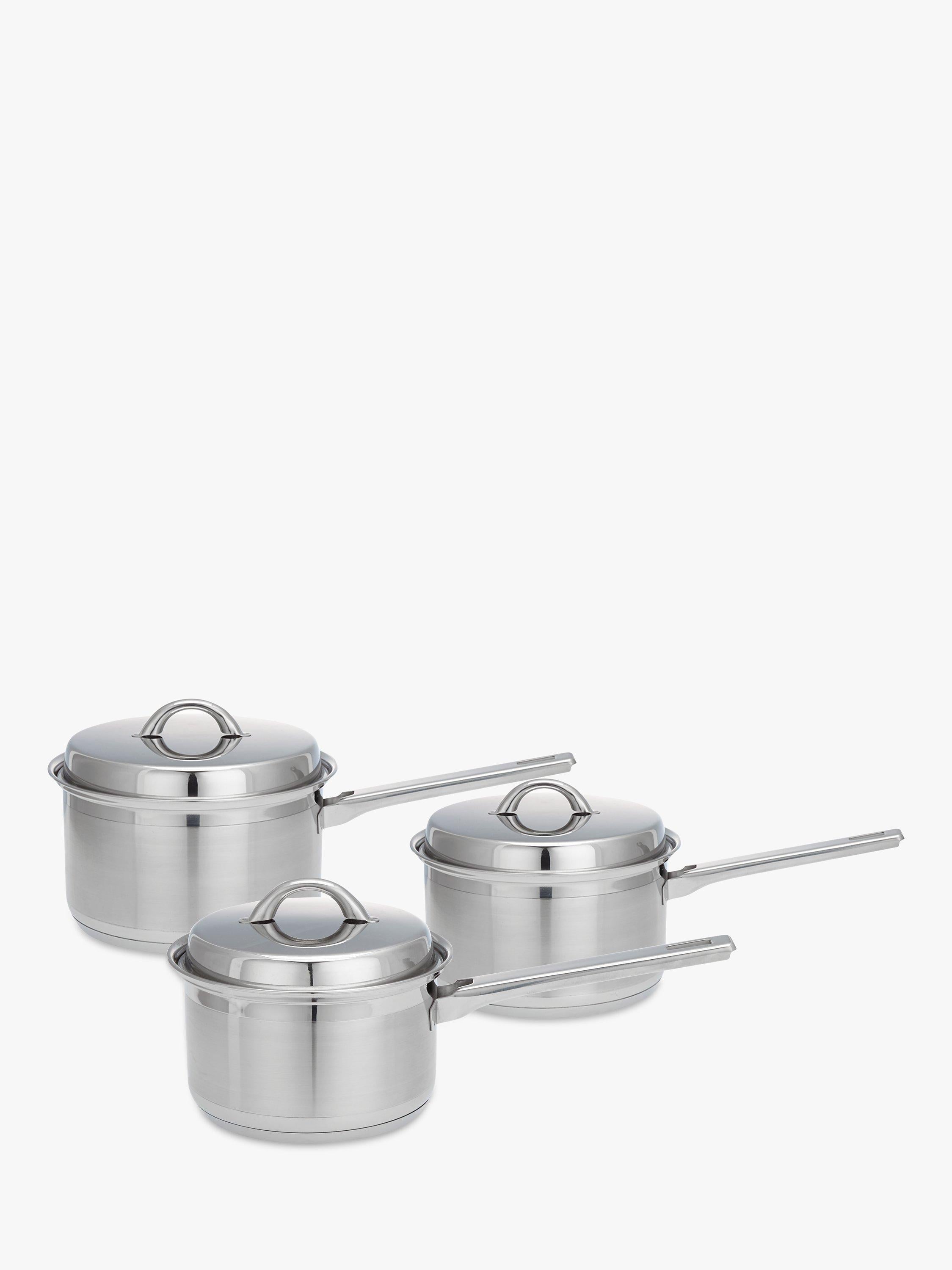 This John Lewis Classic 3 Piece Stainless Steel Saucepan Set provides reliable cooking performance for your kitchen needs. Made using magnetic 18/10 grade stainless steel, these pans conduct heat evenly and efficiently. Featuring tight-fitting lids, they effectively retain heat and moisture during simmering.