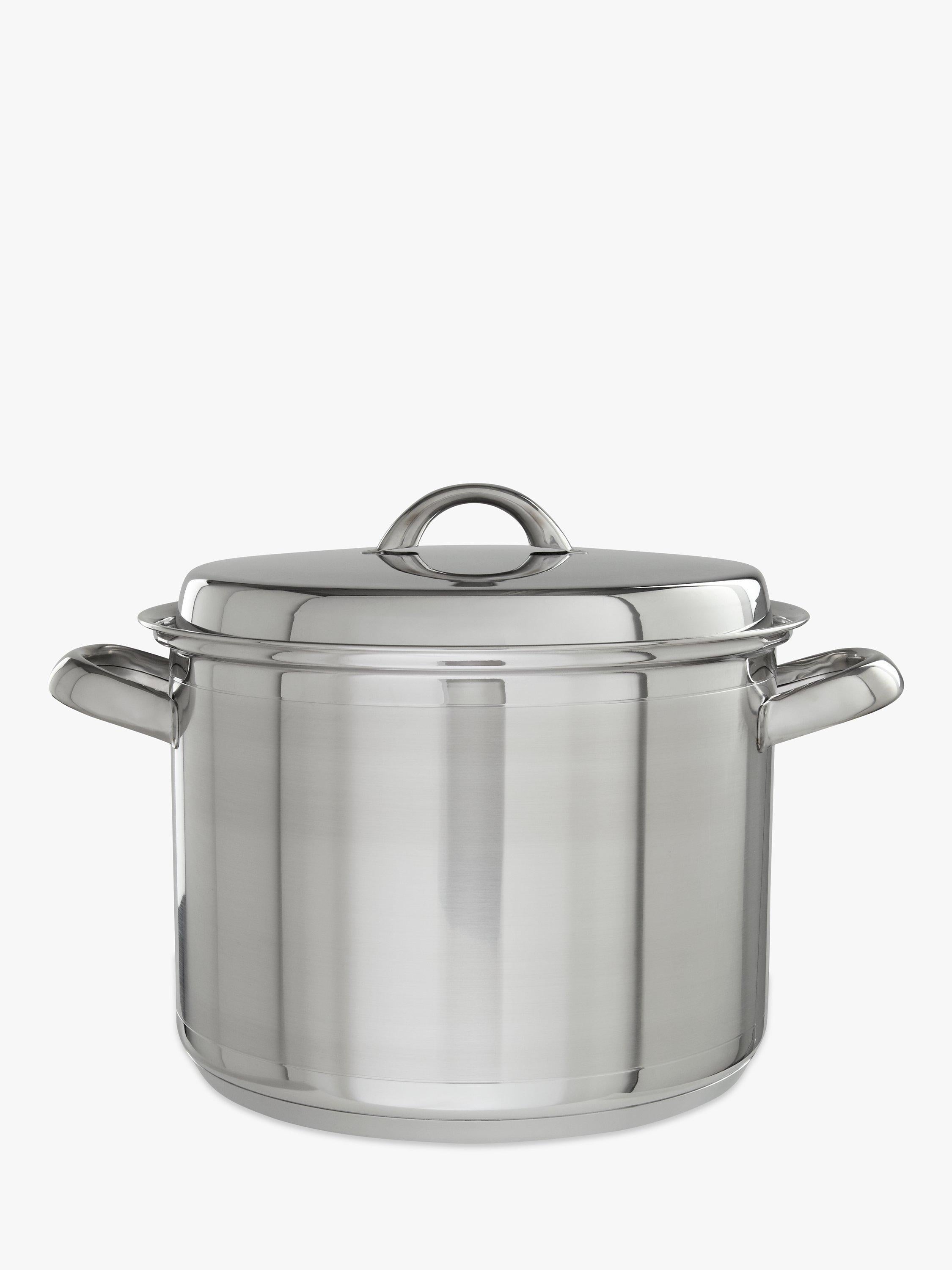 John Lewis Classic Stockpot 6.5L 24Cm is built from premium 18/10 stainless steel for enduring kitchen performance. This reliable pot features a stainless steel base, ensuring even heat distribution across all hob types efficiently. It is suitable for everyday cooking tasks. This durable cookware offers consistent results.