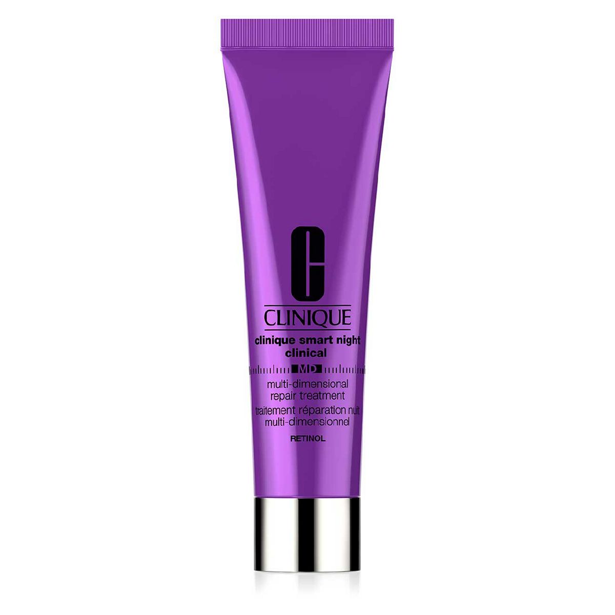 Clinique Smart Night™ Clinical MD Multi-Dimensional Repair Treatment RetinolWhat It IsNighttime treatment helps address the look of aging with the power of retinol plus comforting hydration.What It DoesWith high-grade retinol, this creamy formula sinks in to help support skin’s natural surface cell turnover to help improve the look of fine lines and wrinkles. Skin tone looks improved, more radiant. The appearance of pores and texture looks improved. Delivers nourishing hydration, which helps comfort skin and offset dryness sometimes associated with retinol.*