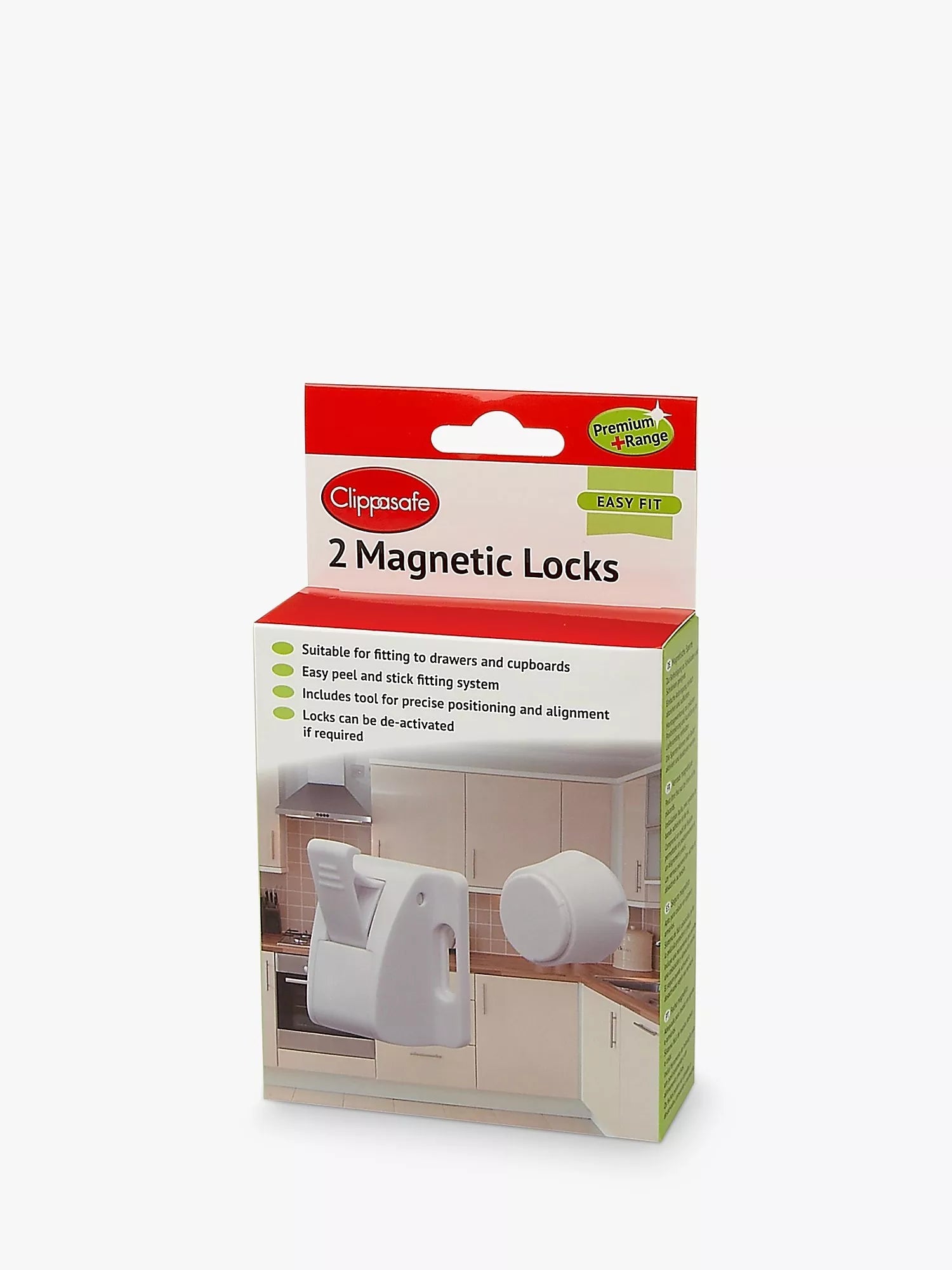 These locks are opened using a magnetic key and can be attached to cupboards and drawers. They have an easy peel-and-stick fitting system to position them before fixing them in place with the screws. The locks can be fitted in a vertical or horizontal orientation and also include a tool for precise positioning and alignment. They can also be de-activated and re-activated as required.