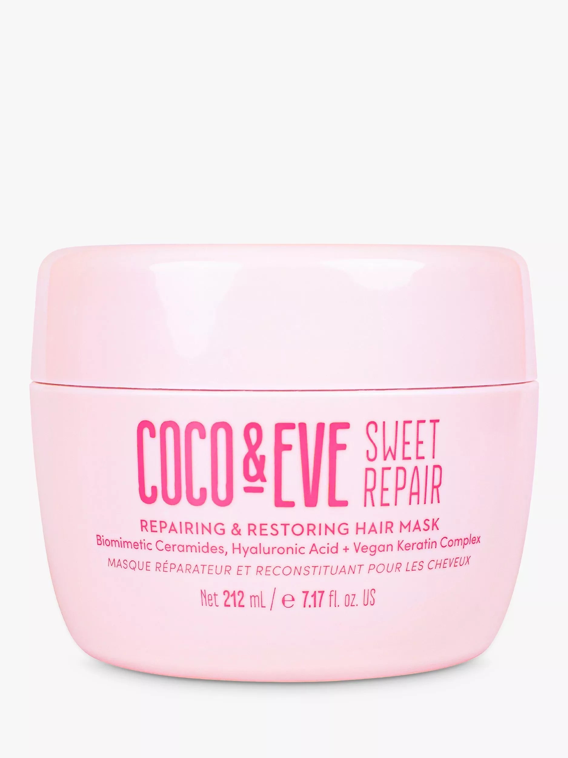 Coco & Eve's Sweet Repair Mask is a new way to repair hair that is weakened by heat, chemical damage and colour. A power-blend of Biomimetic Ceramides, Hyaluronic Acid and Vegan Keratin, plus our vitamin-rich tropical fruit reduce hair damage, and increase shine and hydration.