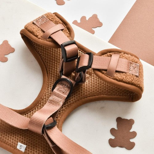 Introduce warmth and texture to your dog's walks with the Cocopup London Teddy Paddington Harness in size Medium. This accessory features a wonderfully cosy, textured Teddy fabric, making this the ideal teddy dog harness for cooler weather or comfortable everyday wear. It is designed to offer a snug yet secure fit for your companion.