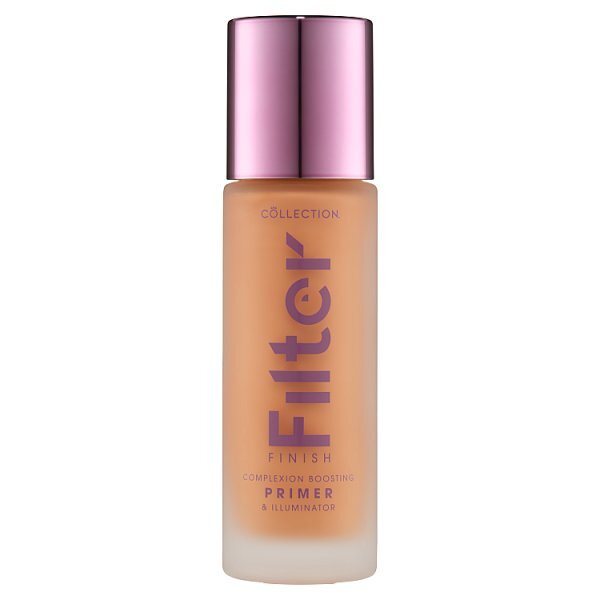 The Collection Gorgeous Glow Filter Finish Primer functions as an illuminator, primer, and skin perfector. This product is designed to deliver a fresh, dewy complexion. It serves as the ultimate glow booster for your skin base.