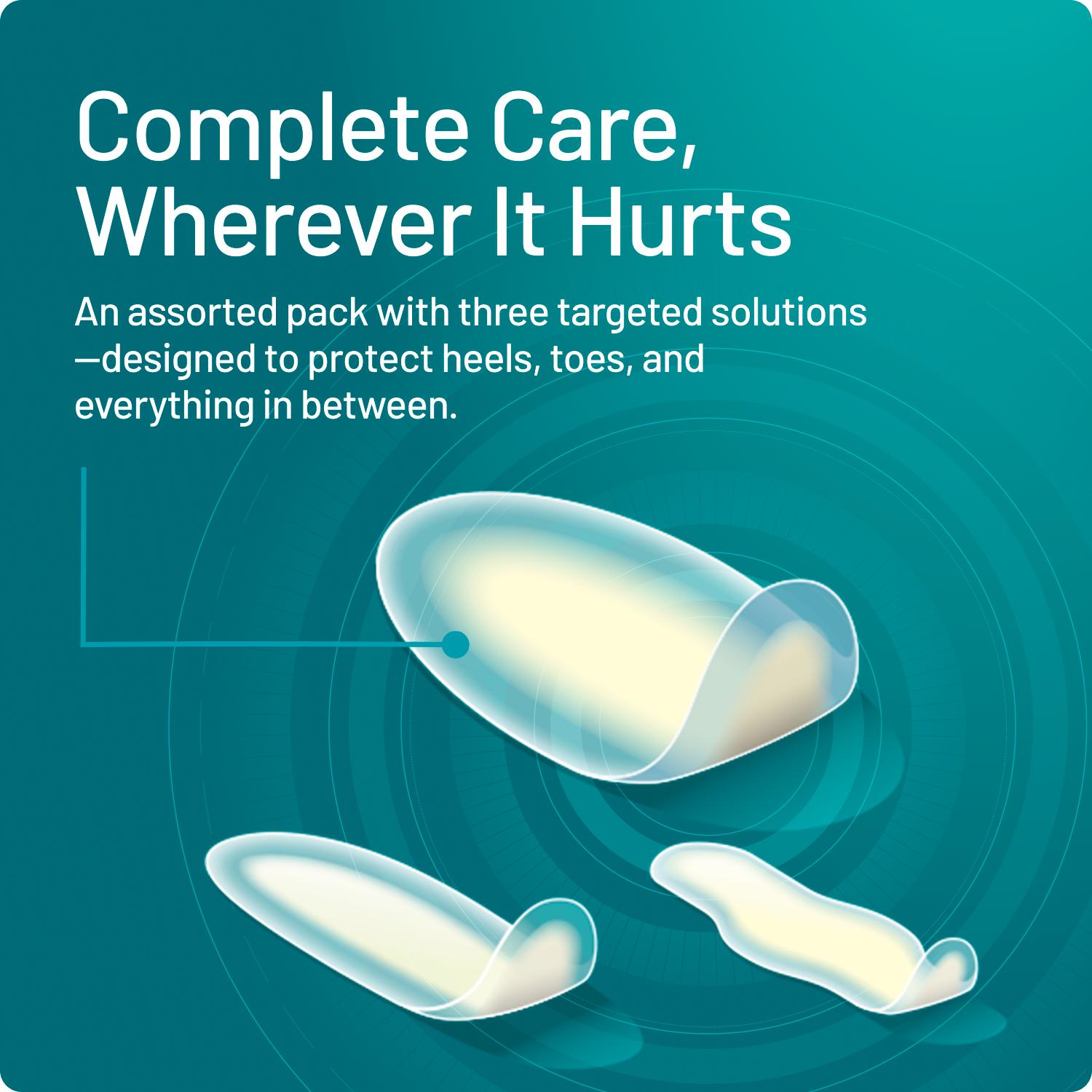 This Compeed Mix Pack contains six individually wrapped plasters designed to offer immediate comfort and support for various foot blisters. Utilising advanced hydrocolloid technology, these plasters create a moist environment that actively speeds up the natural healing process. They conform to the skin, offering protection while you move.