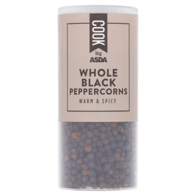 Enhance your dishes with the warm and spicy flavour of COOK by ASDA Whole Black Peppercorns. This 106 Gram ambient product provides a robust seasoning base for various culinary applications. Ensure your spice rack is stocked with this versatile ingredient for daily cooking needs.