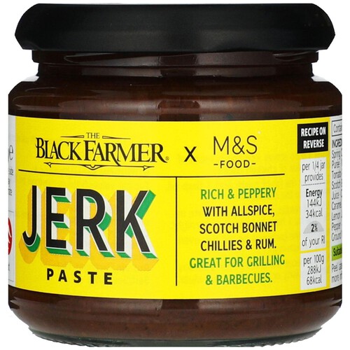 Read MoreThis rich and peppery Jerk Paste from The Black Farmer and M&S Food combines fiery Scotch bonnet chillies, deep aromatic allspice, and rum for a bold Caribbean flavour. This robust cooking paste enhances barbecues and grilled dishes with its spicy taste.