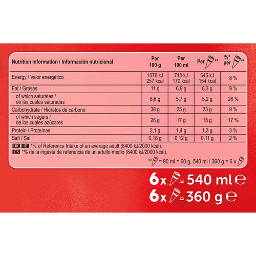 This Cornetto Strawberry ice cream cone is a tasty combination of a crispy baked wafer cone, coated inside from top to bottom with a chocolatey layer, combined with vanilla flavour ice cream, strawberry fruit ice and topped with strawberry sauce and white chocolate curls. For over 50 years we’ve been perfecting our Cornetto recipe, making sure the taste of every Cornetto ice cream is better than the last. This treat will take your taste buds on a delicious journey from the tasty white chocolate topping, through the strawberry sauce topped vanilla flavour ice cream and strawberry fruit ice, down to the crunchy wafer cone, ending with the legendary chocolatey tip. An Italian ice cream manufacturer from Naples was passionate about ice cream, loving smooth texture, delicious flavours and great ingredients. One day, they found a way to spread their passion for ice cream to everyone, creating a formula that could not fail. The great idea was to cover the inside of the cone with a chocolatey layer, allowing the wafer to keep its crispiness when filled with ice cream. From this breakthrough we have the Cornetto we know and love today. Each pack contains six tasty ice creams to be enjoyed as a snack, tasty treat or dessert and are guaranteed to be a favourite with family and friends. Find us on Facebook, Instagram and Twitter and let us know your favourite flavour!