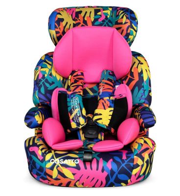 The Cosatto Zoom Group 123 car seat provides adaptable safety for your growing child across multiple stages of travel. Featuring the distinctive Club Tropicano pattern, this seat is engineered to offer secure restraint from toddlerhood well into primary school years.