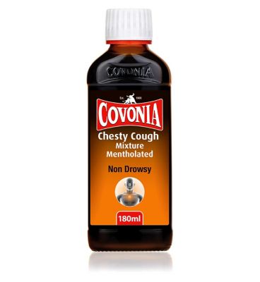 Covonia Chesty Cough Mixture Mentholated relieves the symptoms of chesty coughs and sore throats.