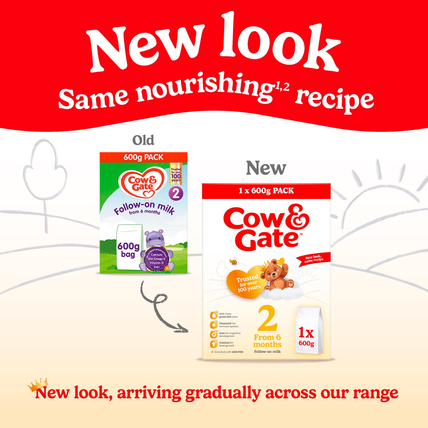 Our 600g bag of Cow & Gate Follow-on milk contains 18 feeds and comes with a handy scoop.