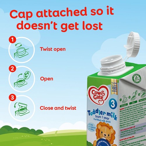 Cow & Gate Toddler Milk is specially formulated to support children aged one year and older as they become more active and playful. This convenient ready-to-feed liquid supports their changing nutritional requirements during this rapid growth phase.