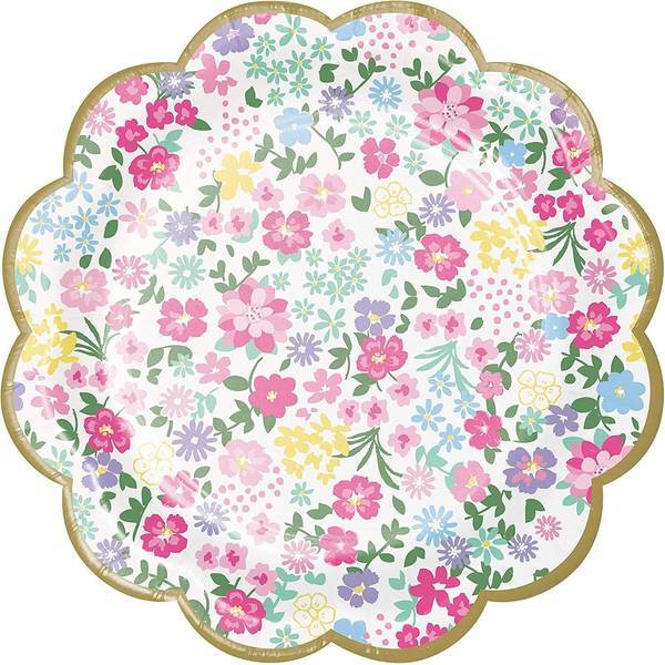 Material: Paper. Width: 7in. Sustainability: Biodegradable, Environmentally Friendly. Design: Floral, Scalloped. Occasion: Tea Party.