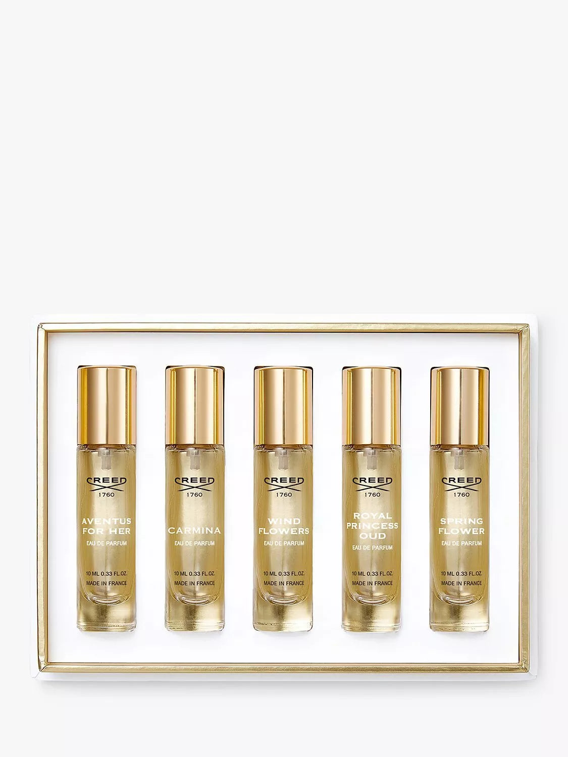 Created for an exceptional olfactory experience, the 5 x 10ml Eau de Parfum gift set features the house's signature feminine scents. Designed in the Creed signature pattern the oversized print is inspired by the 260-year-old history of the brand which creates a timeless gift for now and forever.