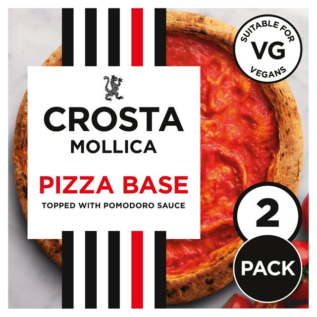 These Crosta Mollica pizza bases are topped with classic Pomodoro sauce and ready for finishing touches at home. The dough uses Lievito Madre, a slow-proved mother dough nurtured with water from the Dolomites. This artisanal approach ensures an authentic texture and flavour profile for your meal.