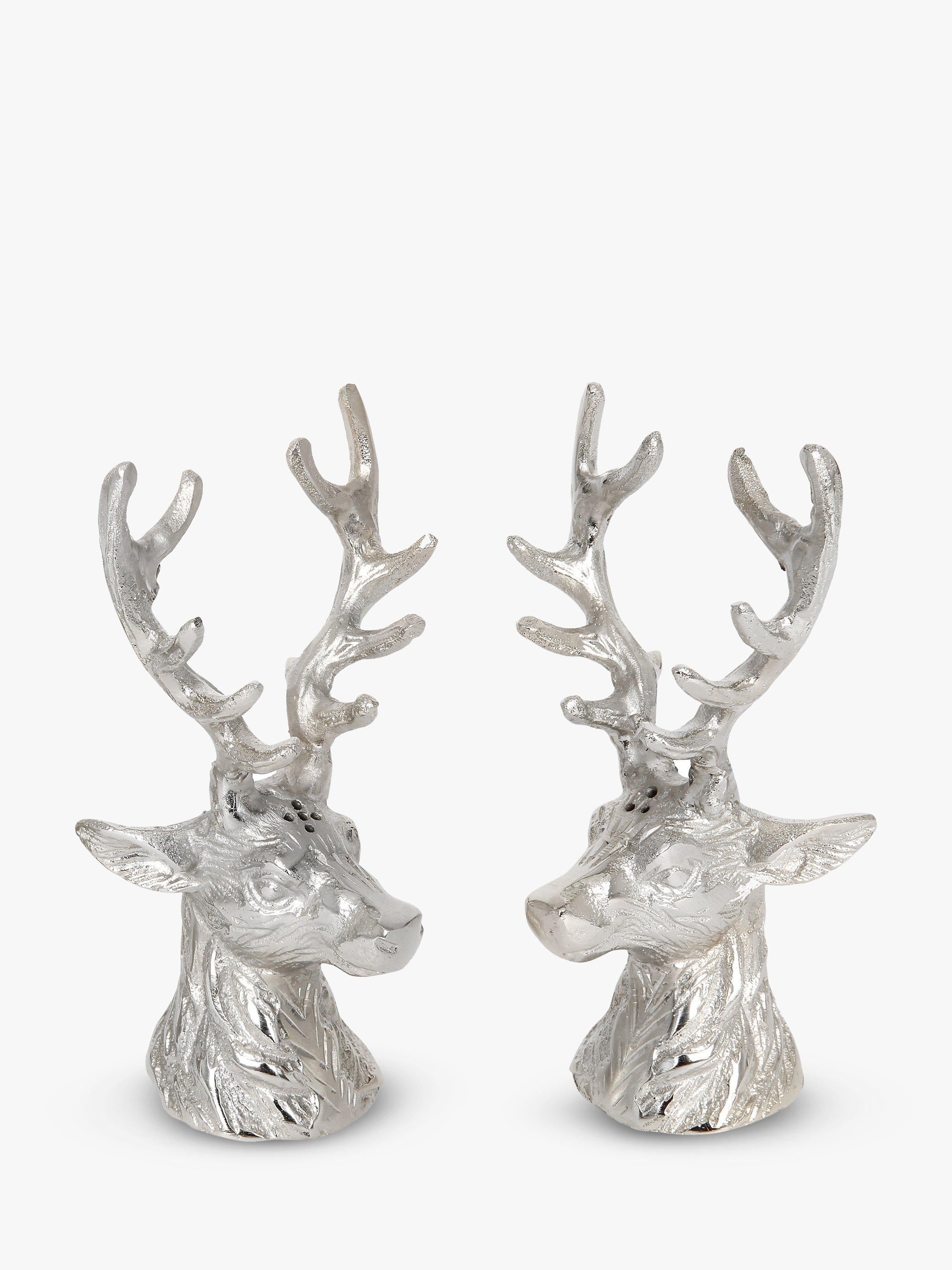 This Culinary Concepts Stag Head Cruet Set greatly enhances any table setting with high-quality, striking design features now indeed. The ornamental salt and pepper shakers feature intricate stag detailing paired with a robust, non-corroding, nickel-plated finish. This decorative set provides enduring, elegant style for both formal dining and daily use.