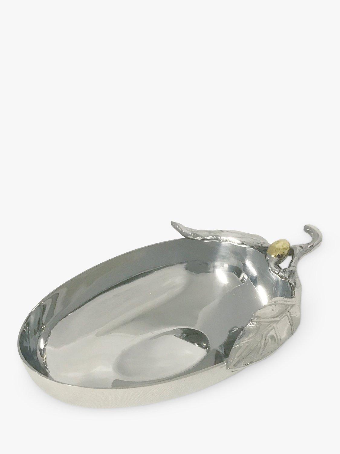 Detailed leaves and a brass olive decorate this dipping bowl from Culinary Concepts, made of stainless steel. Presented in a gift box, this oval-shaped bowl is ideal for serving sumptuous olive oils, balsamic vinegars and other dipping sauces at the table.