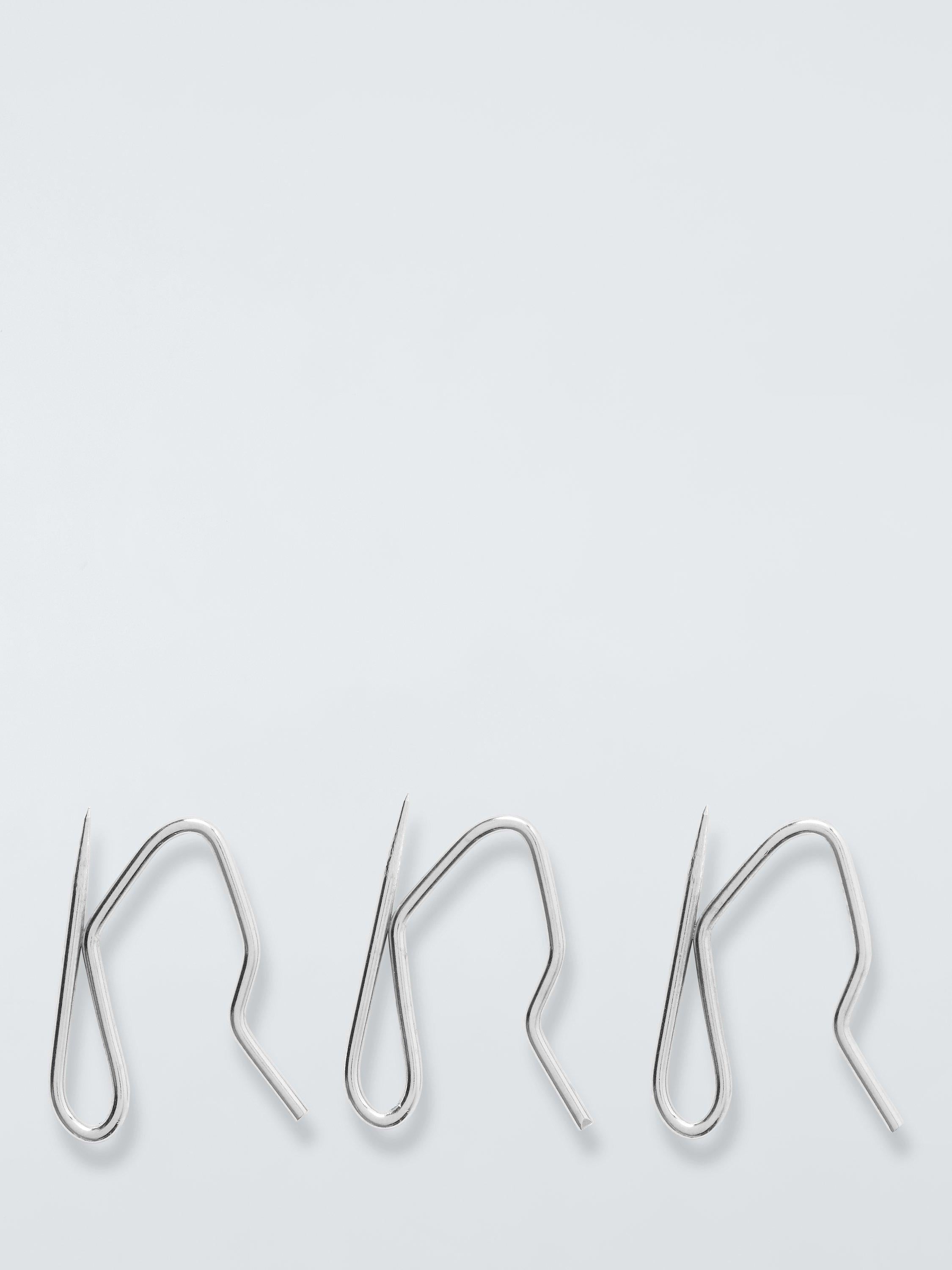 John Lewis offers this essential pack of twenty-five silver curtain pin hooks for robust window dressing setups today indeed. These strong accessories are manufactured to firmly fasten stiffened curtain headings onto existing curtain tracks or poles with reliability. They ensure your drapery maintains its professional, neat appearance throughout the day.