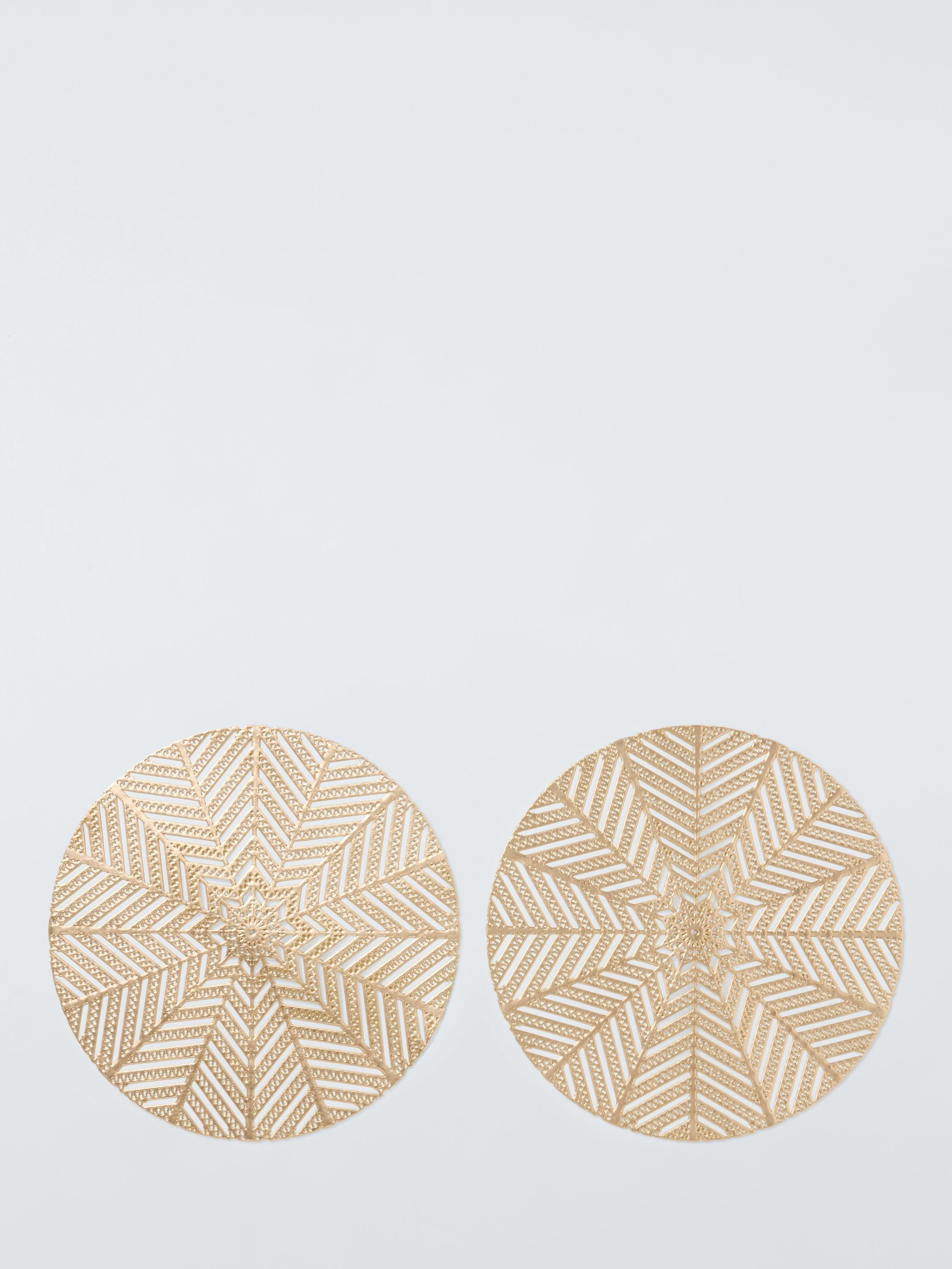 These John Lewis placemats arrive as a Set Of 2, featuring an intricate cut-out snowflake pattern in an elegant gold finish. They are manufactured from durable PVC material, offering practical protection for your dining surfaces during celebrations. This set brings a distinctly festive touch to any seasonal table setting, ensuring elegance remains paired with utility for easy clean-up after meals.