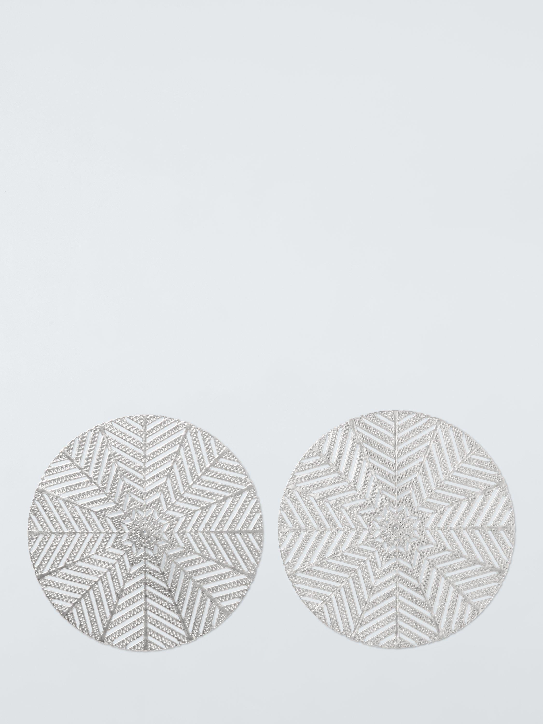 These John Lewis Cut Out Snowflake PVC Placemats form a practical silver set of two, providing essential surface defence for all dining occasions. They feature an attractive, intricate design that elevates any table setting instantly. Use these durable mats daily for reliable, protective surface covering during all enjoyable family meals.