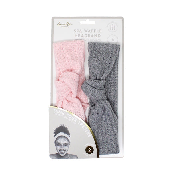 Set includes one pink, one grey Keeps hair back during skincare routines Ideal for all hair types Material: 100% polyester Great for home spa days or gifting Hand wash only Elevate your skincare routine with this duo of spa headbands from Danielle Creations. Featuring one soft pink and one gentle grey headband, this set is perfect for keeping hair neatly tucked away during facials, makeup application, or your daily cleanse. Made from stretchable, comfortable fabric, they offer a secure yet gentle fit.