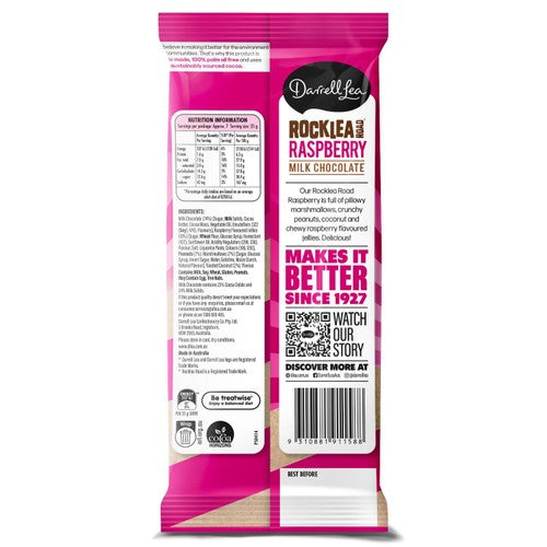 Darrell Lea's Raspberry Rocklea Road Block delivers a familiar yet satisfying confectionery experience wrapped in smooth milk chocolate. This substantial block combines several classic textures and tastes into one indulgent piece. It remains a highly regarded combination amongst fans of traditional sweet treats.