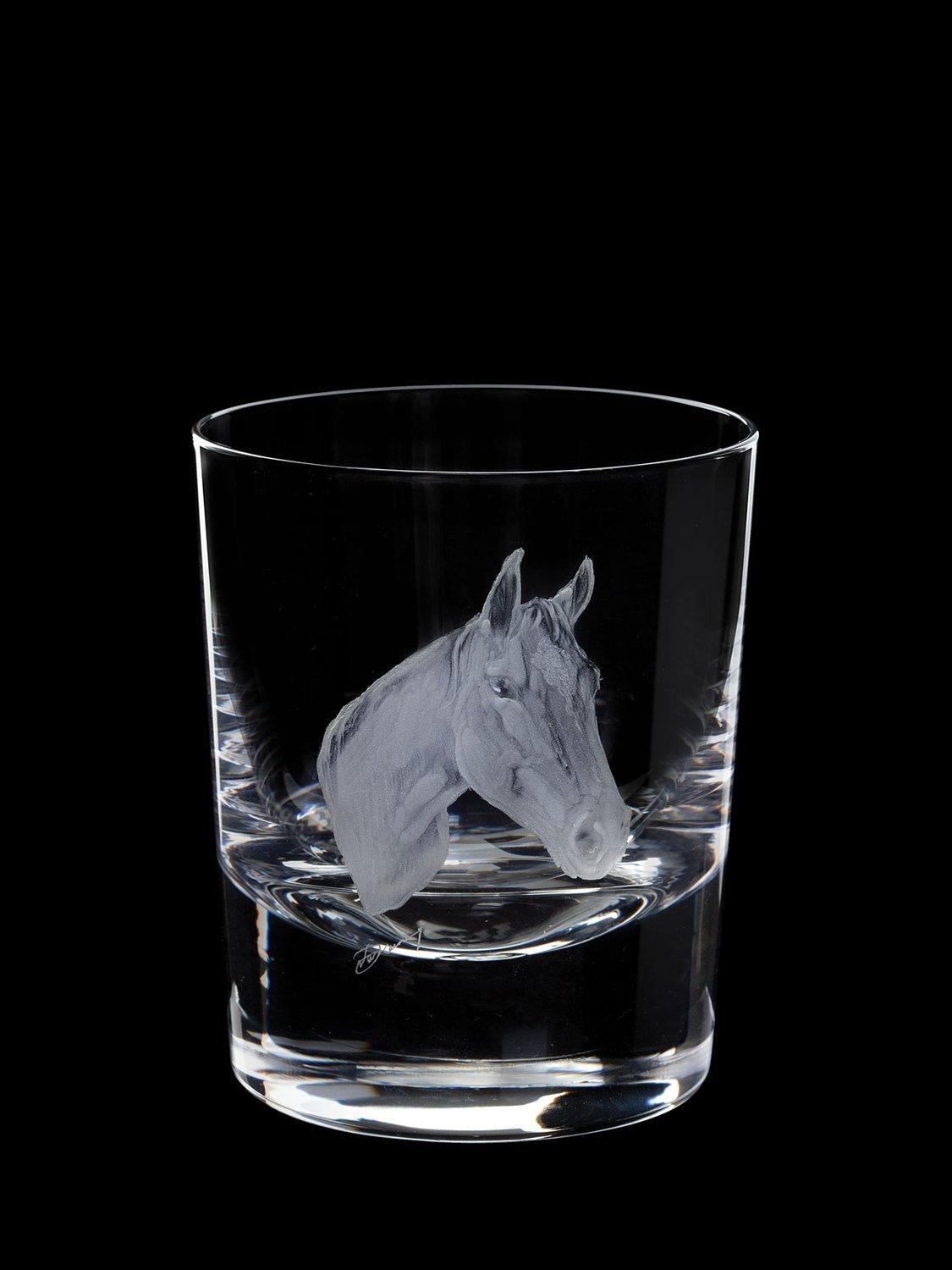 Elevate your gift-giving with this exquisite whisky tumbler, a timeless crystal glass keepsake crafted by skilled artisans. Made in the UK, each tumbler is unique and meticulously hand-engraved with an intricate and lifelike portrait of a magnificent horse. The artistry is a true testament to the talent of renowned Master Engraver Nick Davey, whose delicate strokes breathe life into the crystal, capturing the grace and power of these noble creatures.
