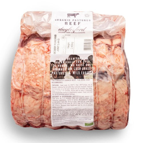 This Daylesford Organic Beef Fore-Rib Joint is suited for special events or as a significant roast centrepiece. The joint includes two of the rib bones, which naturally locks in succulence and develops an intense beef flavour during cooking. Daylesford raises its award-winning herd on lush, clover-rich grass pastures year-round.